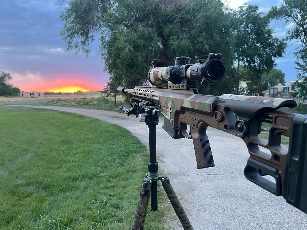 This is the shorter, earlier gen version of the APAC. This chassis is awesome. Looks rad, balances great, and the folder is the best out there, hands down. Comes with heavy steel bag rider, two pairs of weights, QD mount, and spare hardware including a spare set of action screws, plus a SAP two-round quiver. I love this chassis and have run everything from a heavy 26" barreled PRS type setup in it, to my 20" 22lr (which also balances great with a pair of weights added out front). Just have too much stuff at the moment.