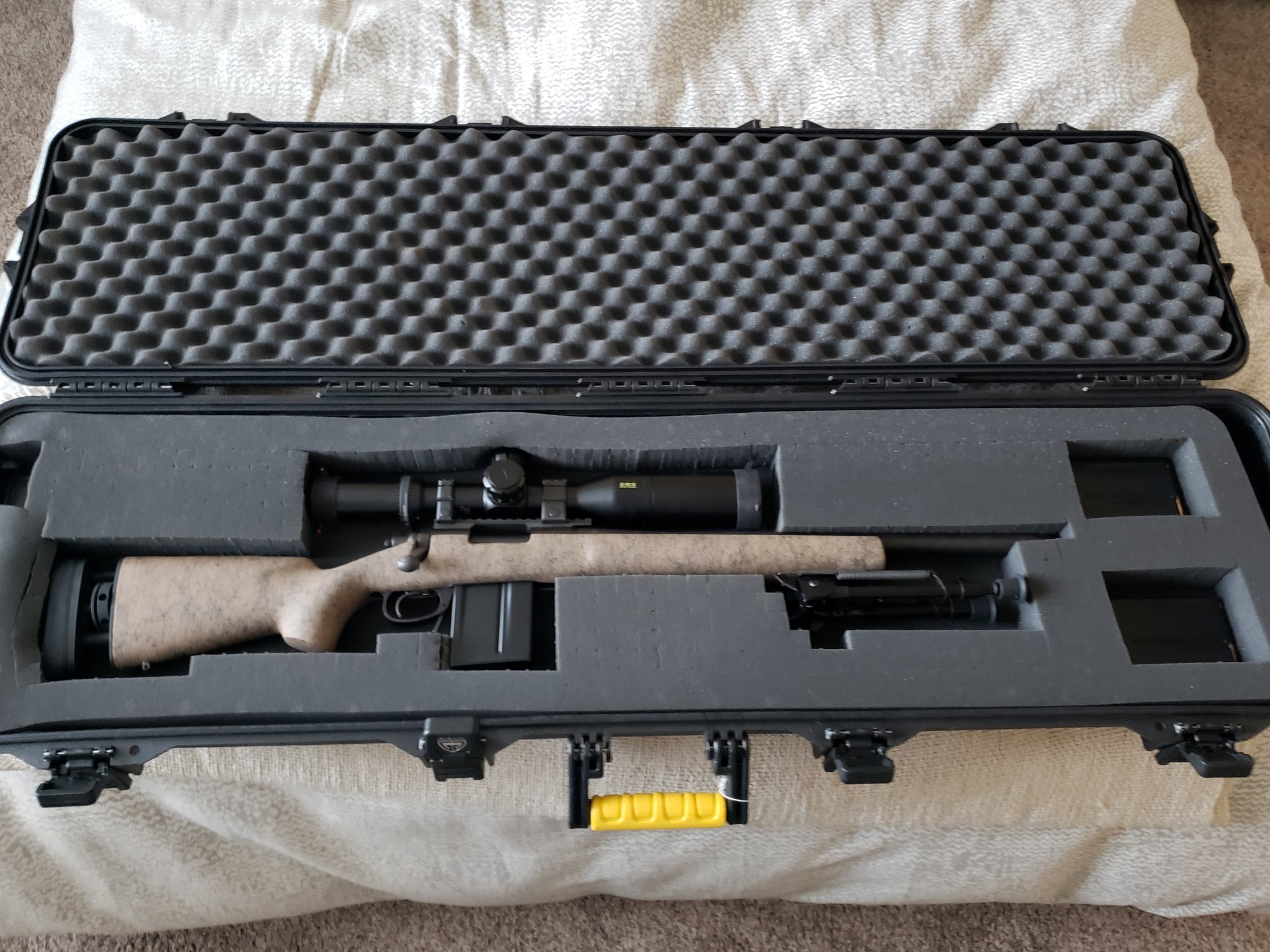Rig is Remington 700 sps aac in a m24 stock, bushnell ERS 3.5-21x, harris bipod, hawkins DBM, a brake (forgot which)