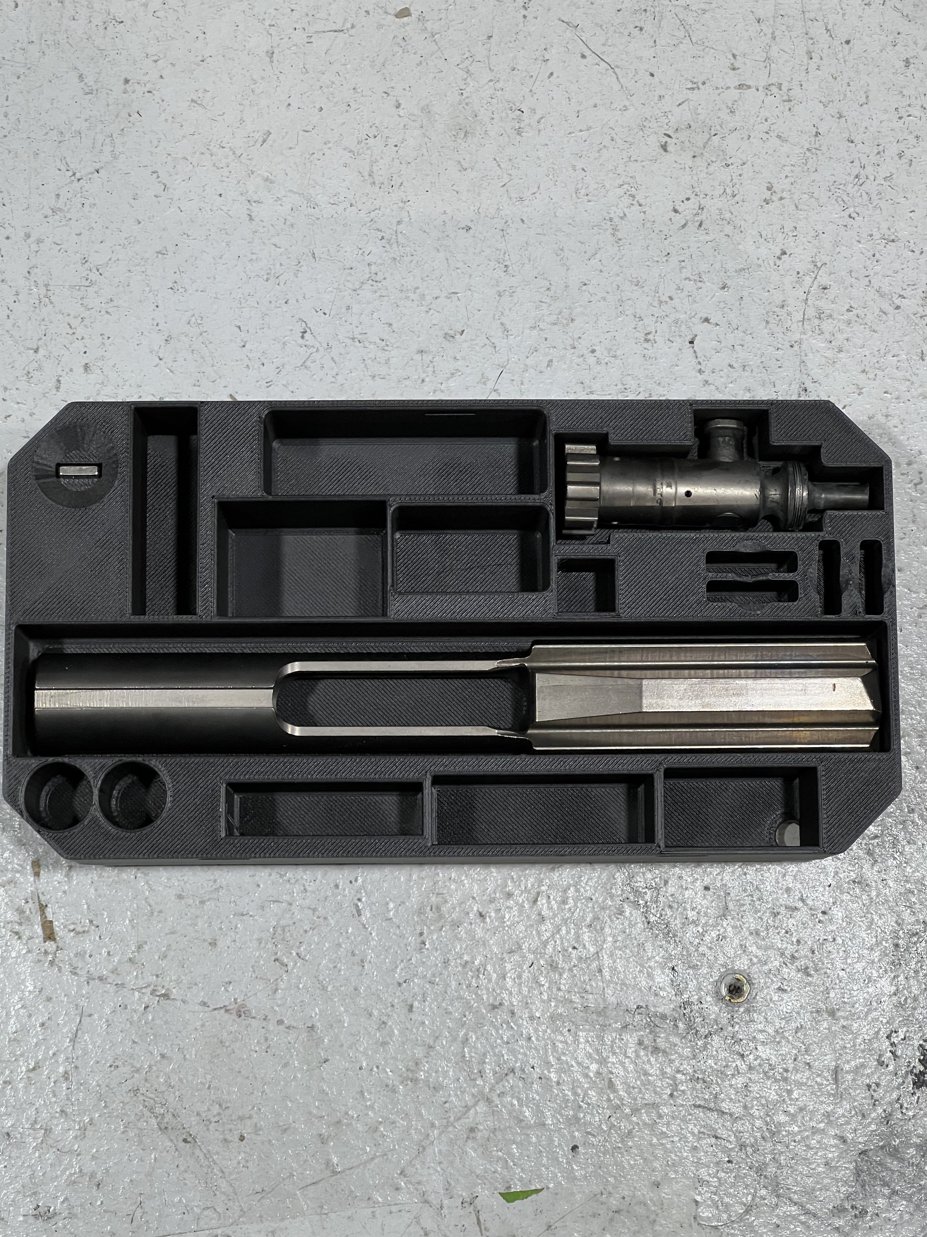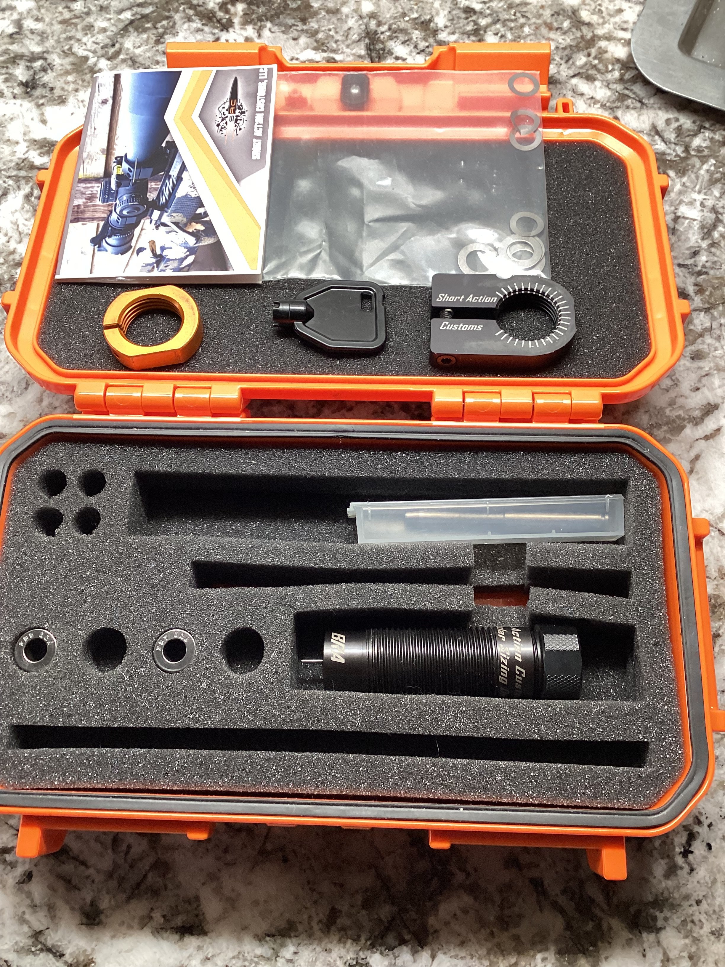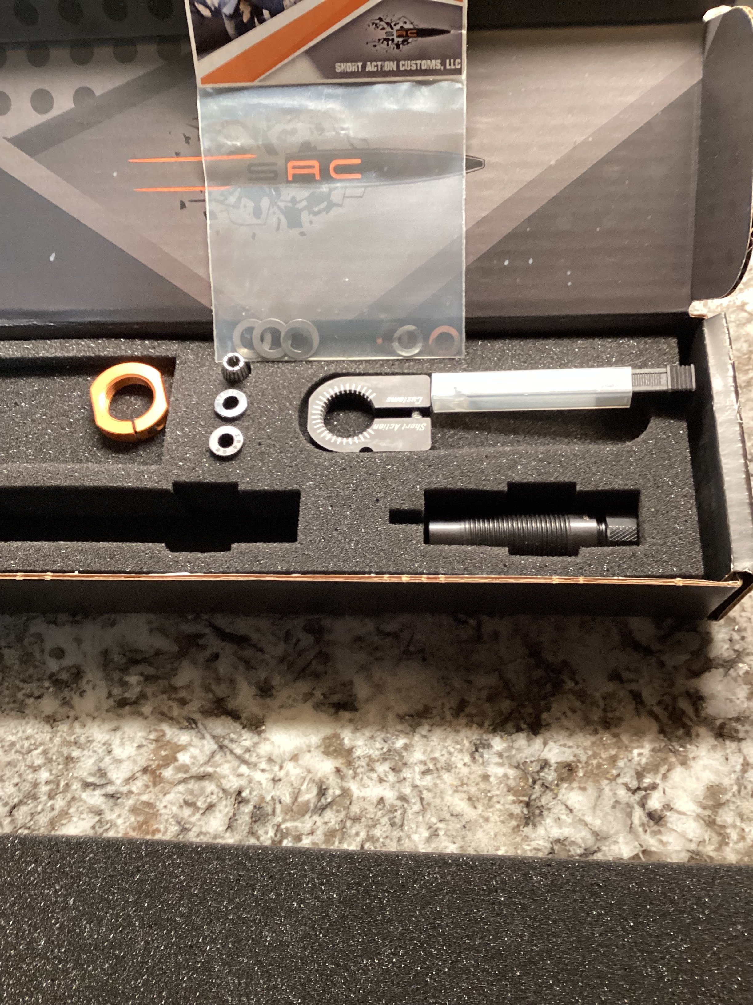 Trigger flat and curved, Bolt, Ear Pro, Turret, Send it( old style fits by removing cover), Crush it , punch for the trigger, 25 dope cards ( small and large version) 4 pens or markers, loose Allen’s and screws