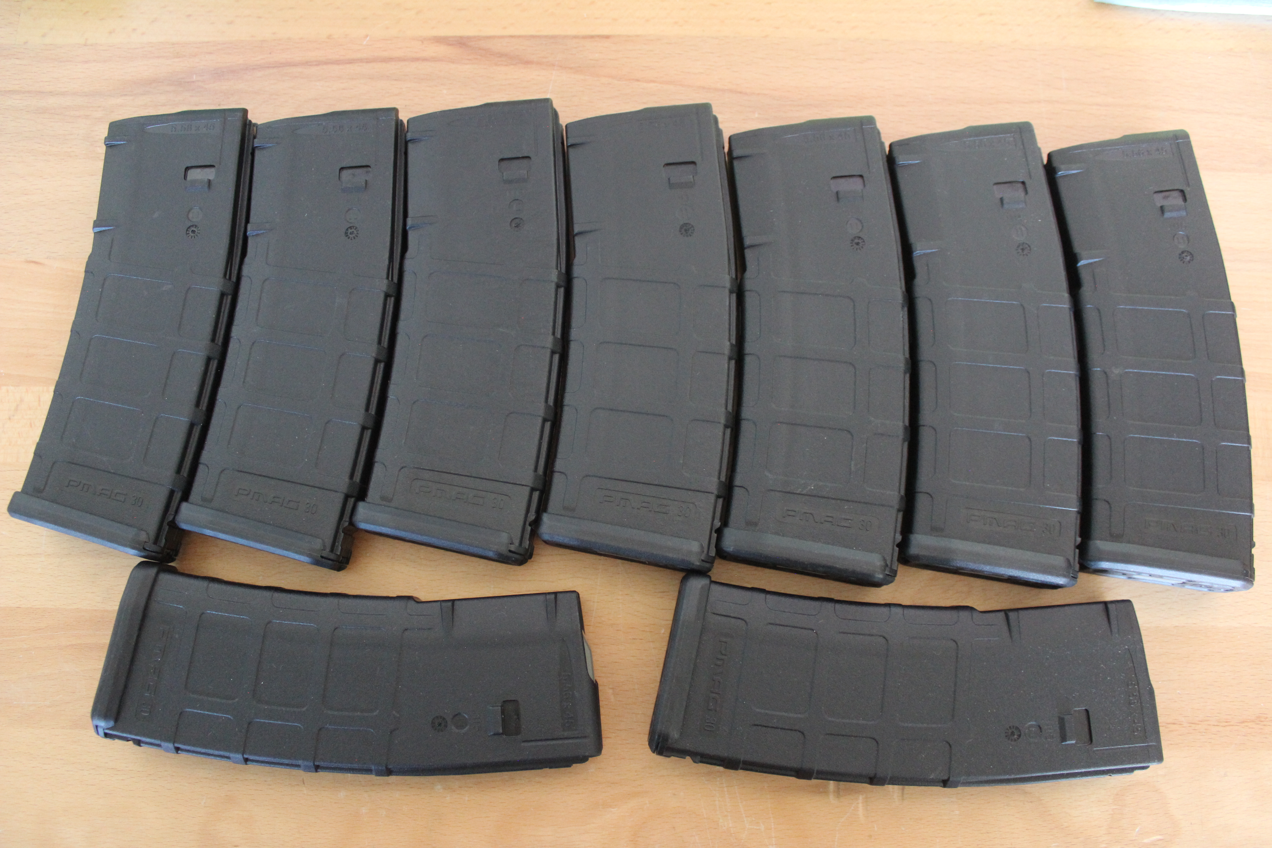 9 Gen 2 MOE AR15 MagPul PMags. 30 round capacity. Never been used, in new condition. $10.00 each shipped and insured. Methods of payment are Gun Tab (you pay the fees), check or money order.