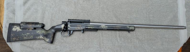 American Rifle Company Nucleus Gen 2 short action Trigger Tech field trigger Bartlein 26" 8 twist medium palma barrel with threaded muzzle (250 rnds) Manners LRH with mini chassis, sling studs on bottom and QD flush cups front and rear on left side Hawkins M5 bottom metal.