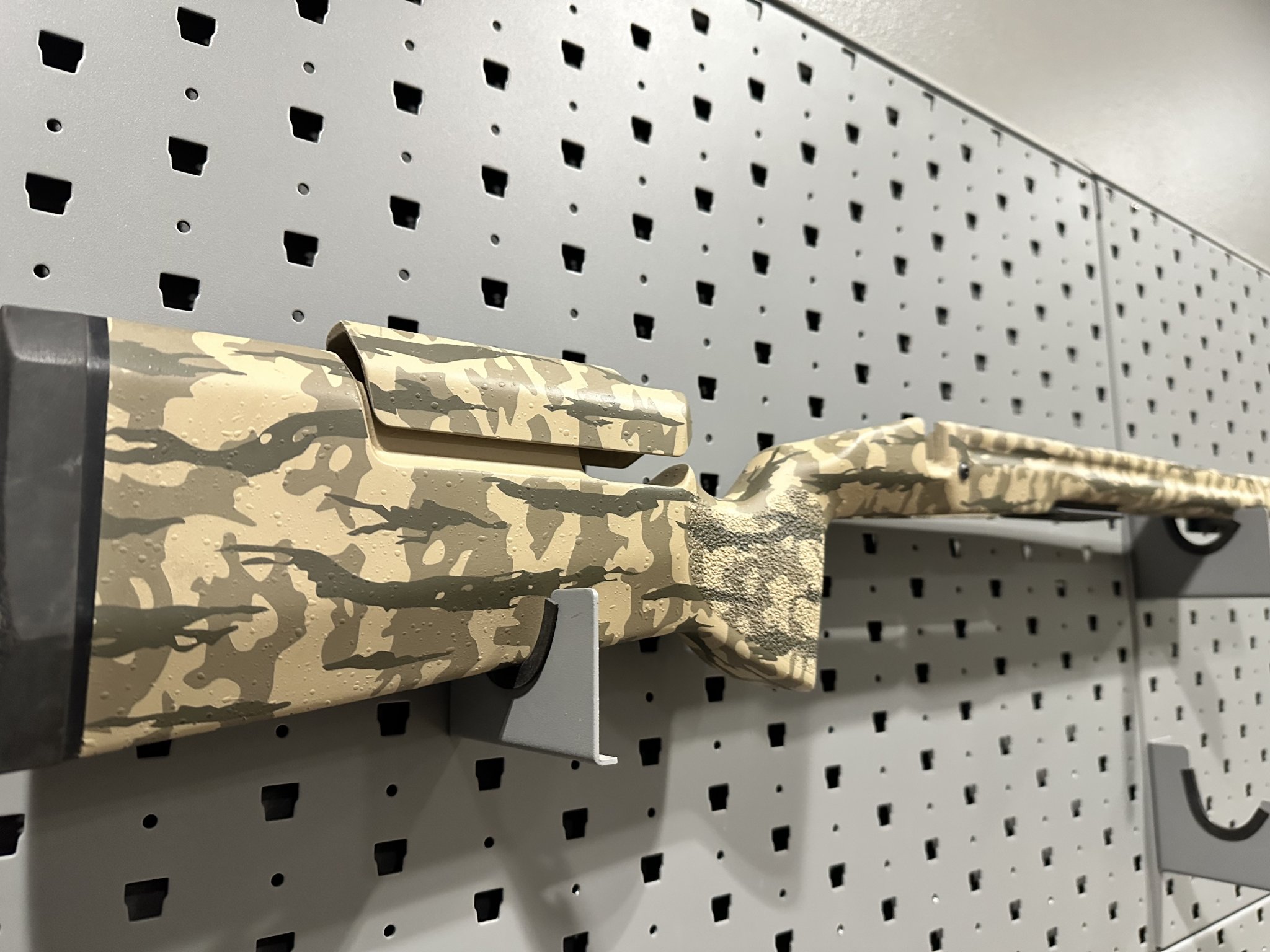 Really nice Manners LRH SA inlet no mini chassis. Bedded for an Impact 737R by Radix Precision, the cerakote is TS Mirage done by Primal Rights. Finish is in perfect shape, one of a kind for sure.