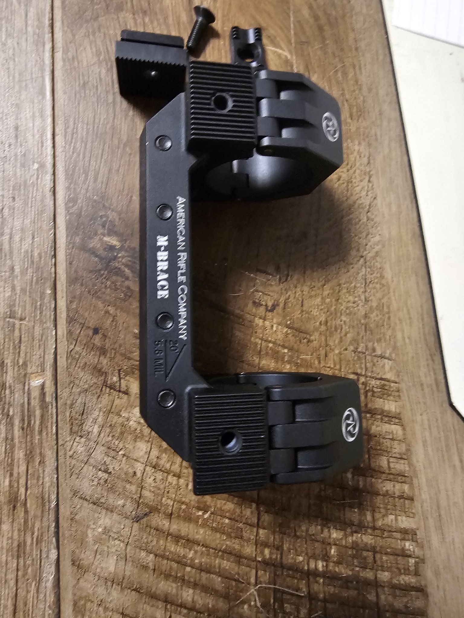 Selling my ARC M-Brace mount. 36mm, 1.25" high, 20 moa cant. Mount is in very good shape. A little anodized wear at one of the accessory locations. Comes with bubble level and 90 degree SendIt level mount.
