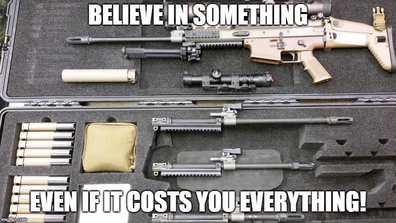 No, I'm very lucky to have a wife that enjoys firearms as much as I. With a few exceptions ( the SCAR being one) if I have a firearm she has an identical one.We have been doing pistol,rifle,&shotgun training and competitions together for the last 23 years. She owns 15 Glocks,4 AR's,2 Benelli's,1 AK-74 and 1 long range bolt rifle in 6.5 PRC. The rifle as pictured in the case has a 20" 6.5 Creedmoor barrel and is used for long range steel. The rifle itself has been SBR'ed and with the 13" barrel and Nightforce 2.5x10x24 make a compact,light package.
