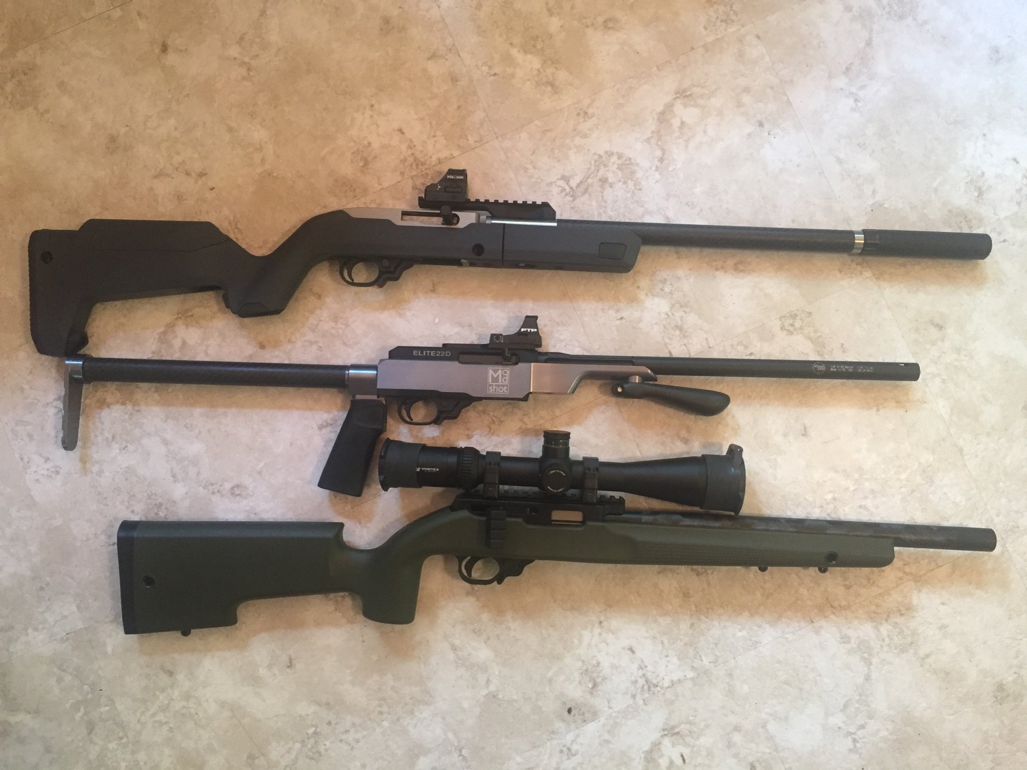 I've got a 10/22 with the Magpul Backpacker stock and red dot mount with MRO on it. The concept is as a "general purpose" .22 (survival, pest control, plinking, etc).
