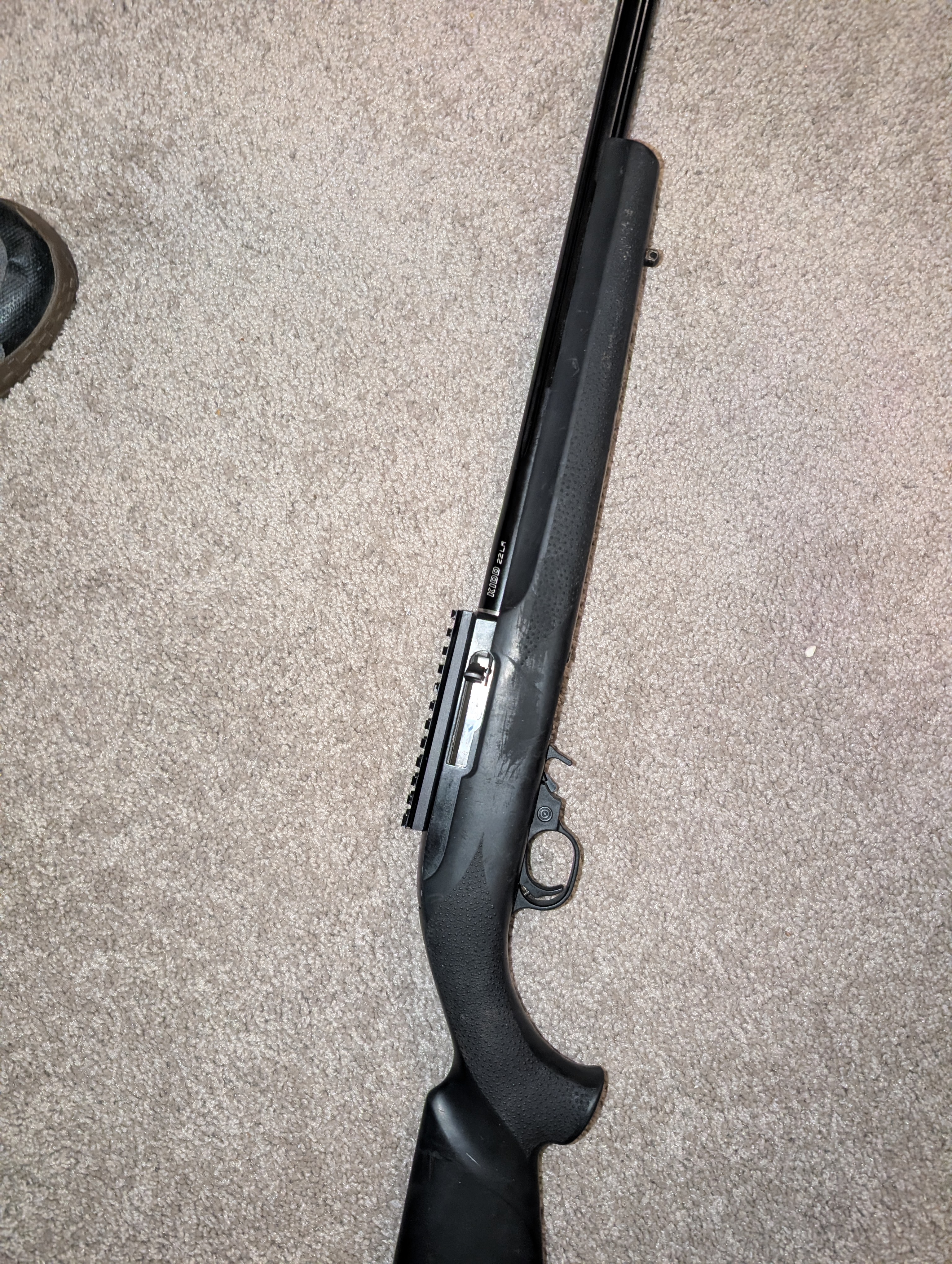 10/22 50th anniversary with a great serial number, KIDD lightweight barrel. Hogue stock. Note trigger has been modified and pretty janky. Threaded 1/2X28