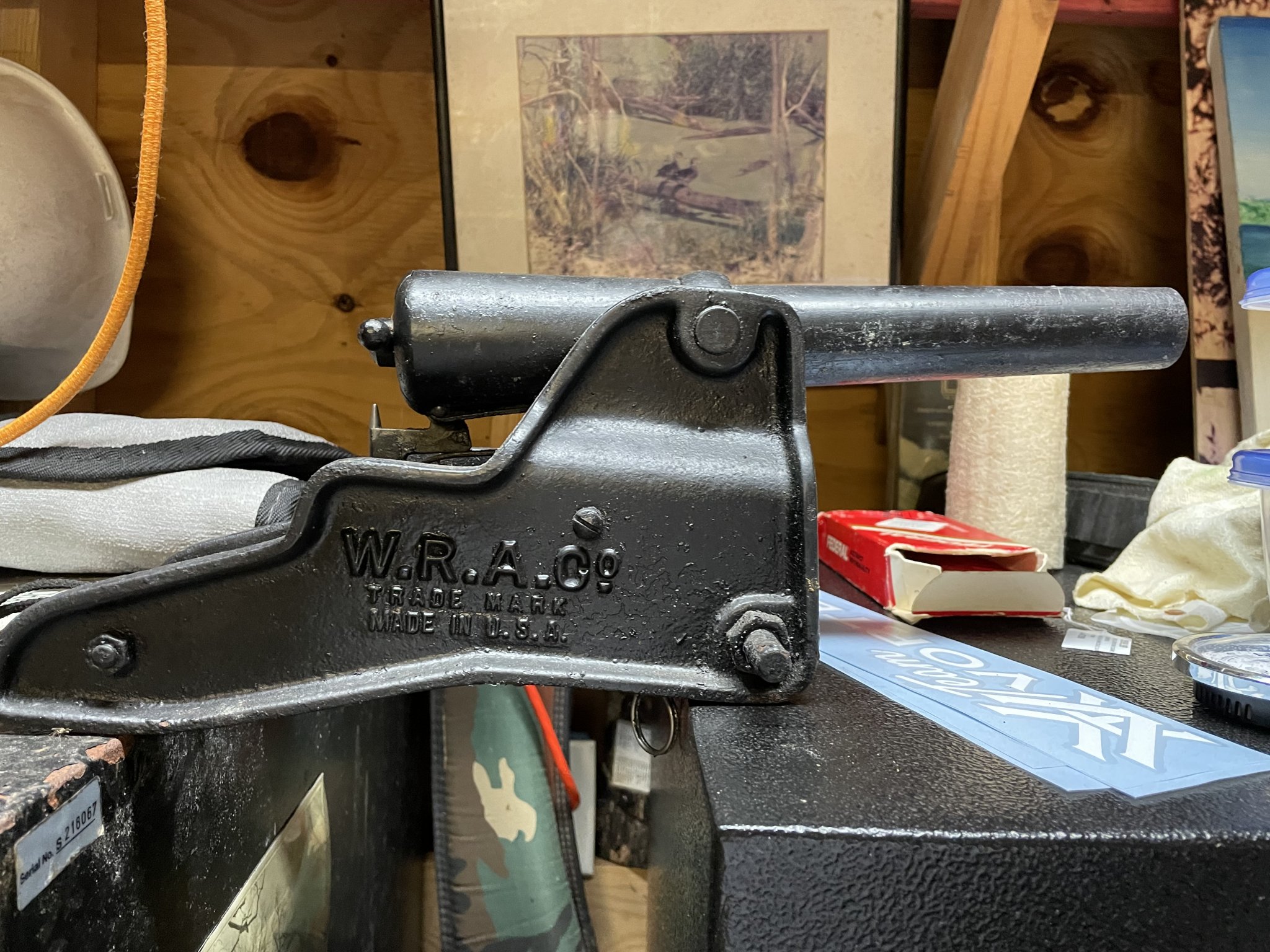 Here is my 10 Ga Strong Signal cannon. It's the same company as the famous one from "Magnum" which is floating around the Interwebs with an insane price on it. I got this from a place in PA that also had a 1/3rd scale Parrot rifle by a known maker that I bought for a song! This was sitting next to it and I scarfed it up as well. Was missing parts and pretty sad. But it's all restored now.