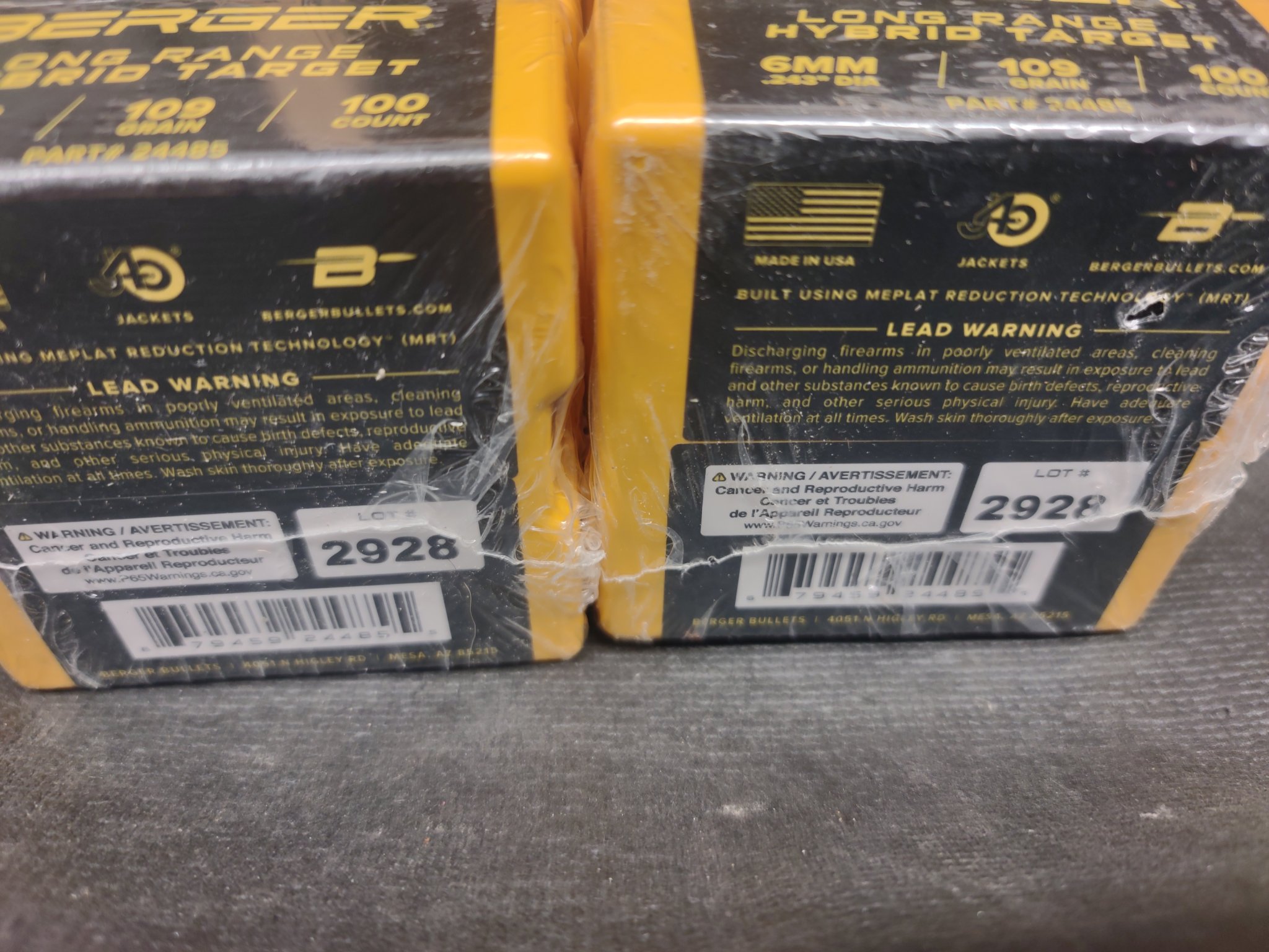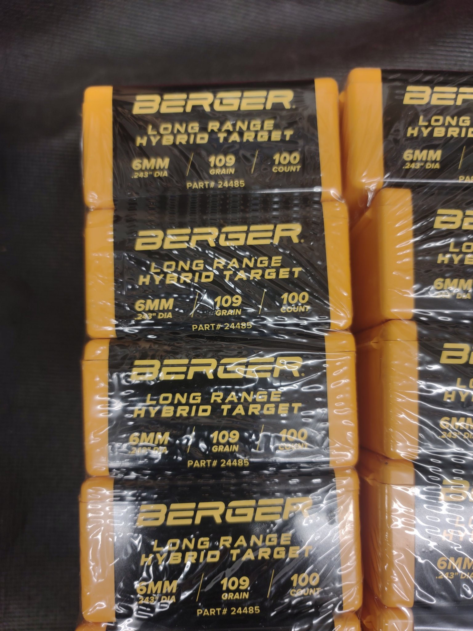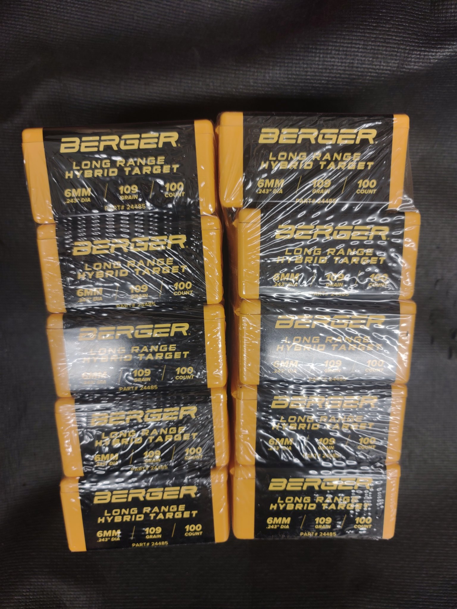 10 boxes all same lot Berger 109 Hybrid LRHT 6mm Bullets ....SOLD Shipped ..........