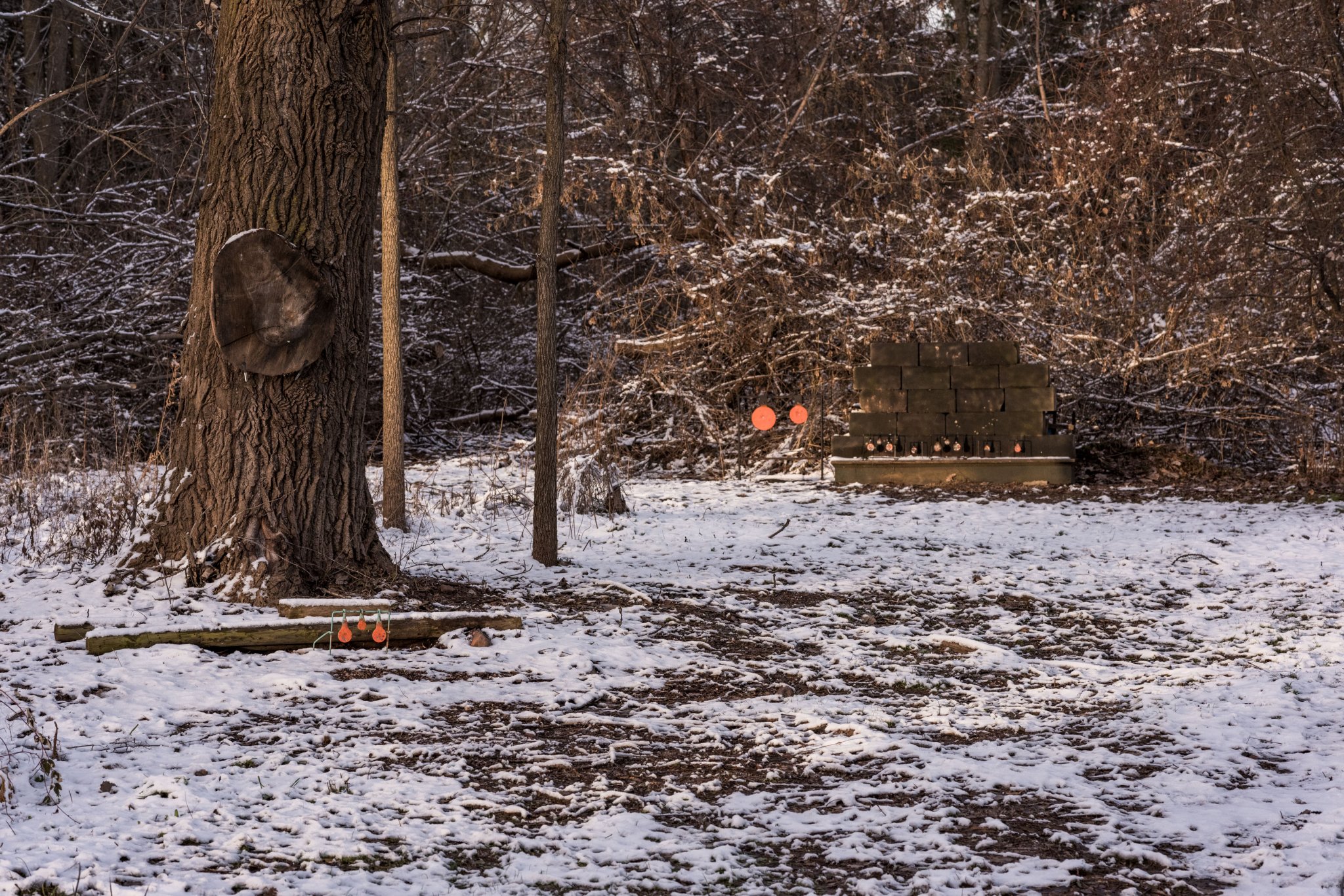 Targets are 1"-2" which are impossible to miss off the bench so I mostly shoot offhand to make it challenging. The only thing the neighbors hear are the targets getting hit.