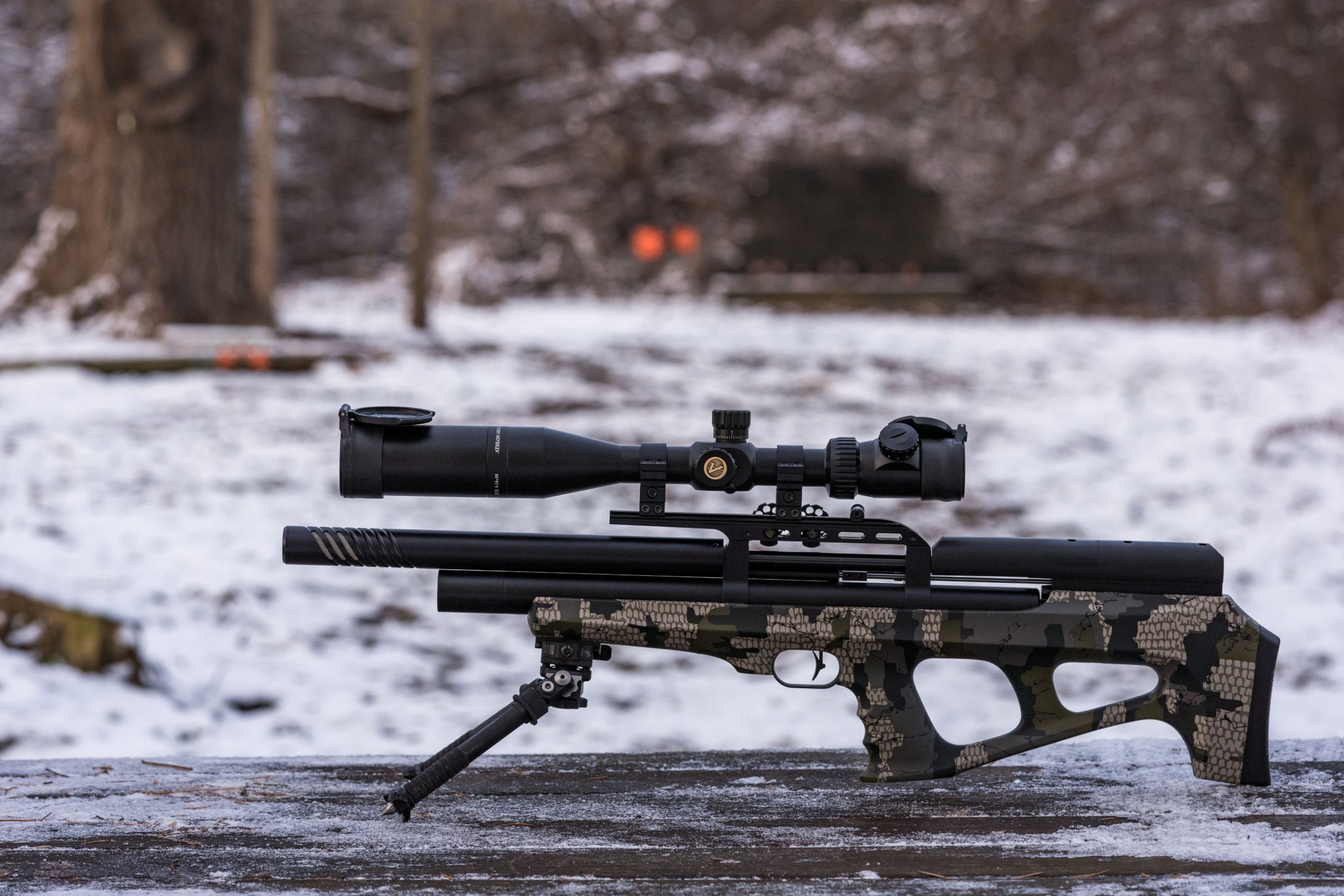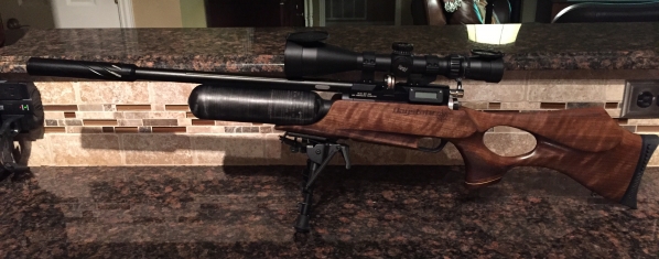 But regardless I've been shooting everyday it isn't storming on my 50m range at home. Got a CF scuba tank for fills and a FX Wildcat II bullpup in .22 with an Athlon 6-24x50 FFP BTR, shooting 15-18gr JSBs. The trigger is surprising good and the action is where it is supposed to be so you can maintain your cheek weld. (Most other bullpup air rifles put the action all the way in the butt and have more friction in the triggering mechanism.) The cheap scope is better than I expected and focuses to 7m, has a good reticle and turrets.