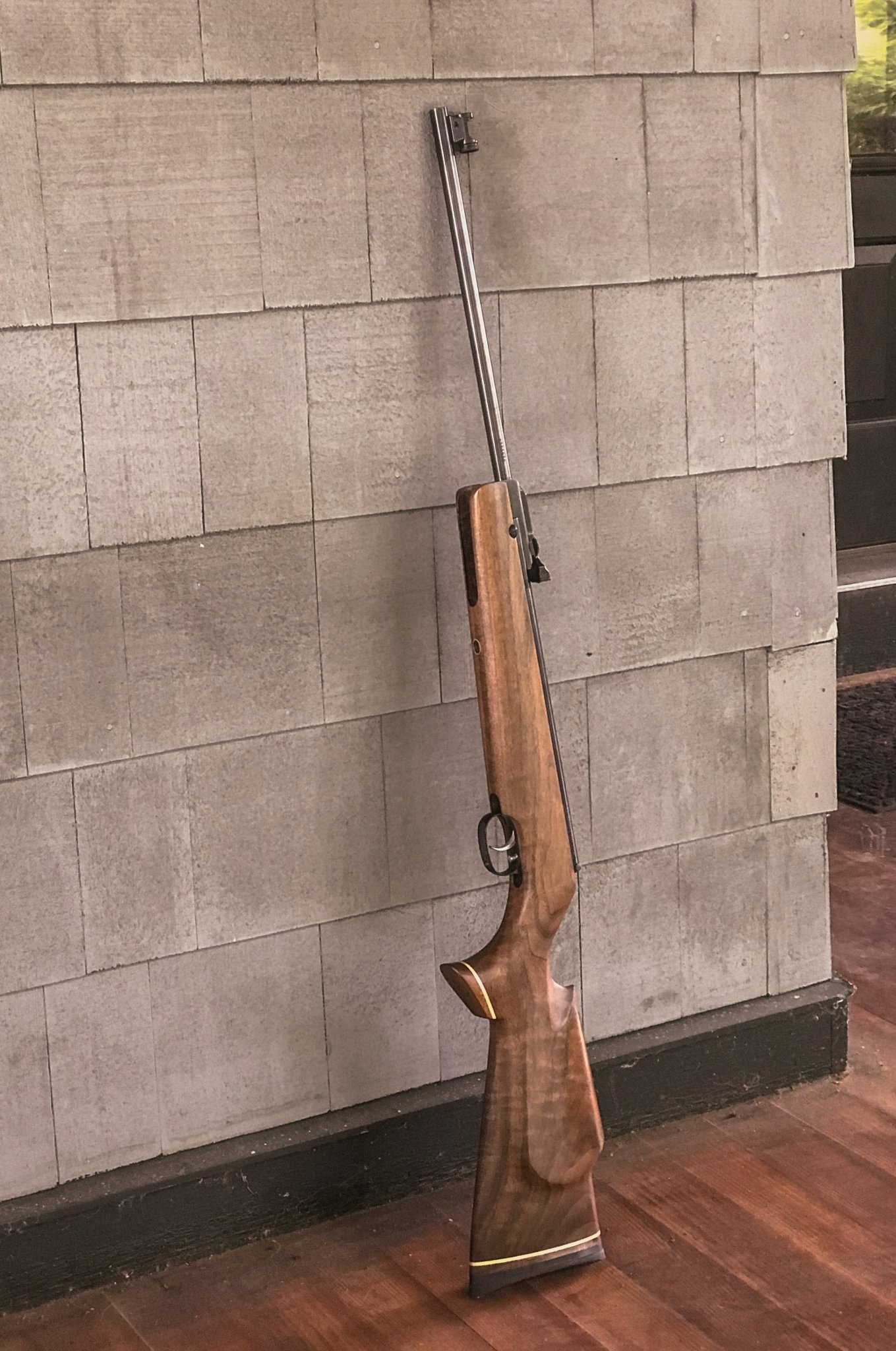 Also put my Weihrauch HW30s .177 springer into a Steve Coracan Walnut stock cut for my shoulder. This one was tuned down to be gentle and is really easy to cock, light and easy to carry. Fiber optic sights and top bifocals work for 59-year old eyes.