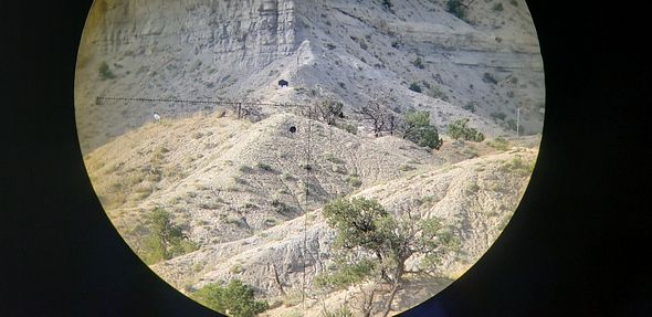 Circle plate near the center is 400yds, buffalo is 780yds in this image through my Leupold 10x binos mounted to the tripod: