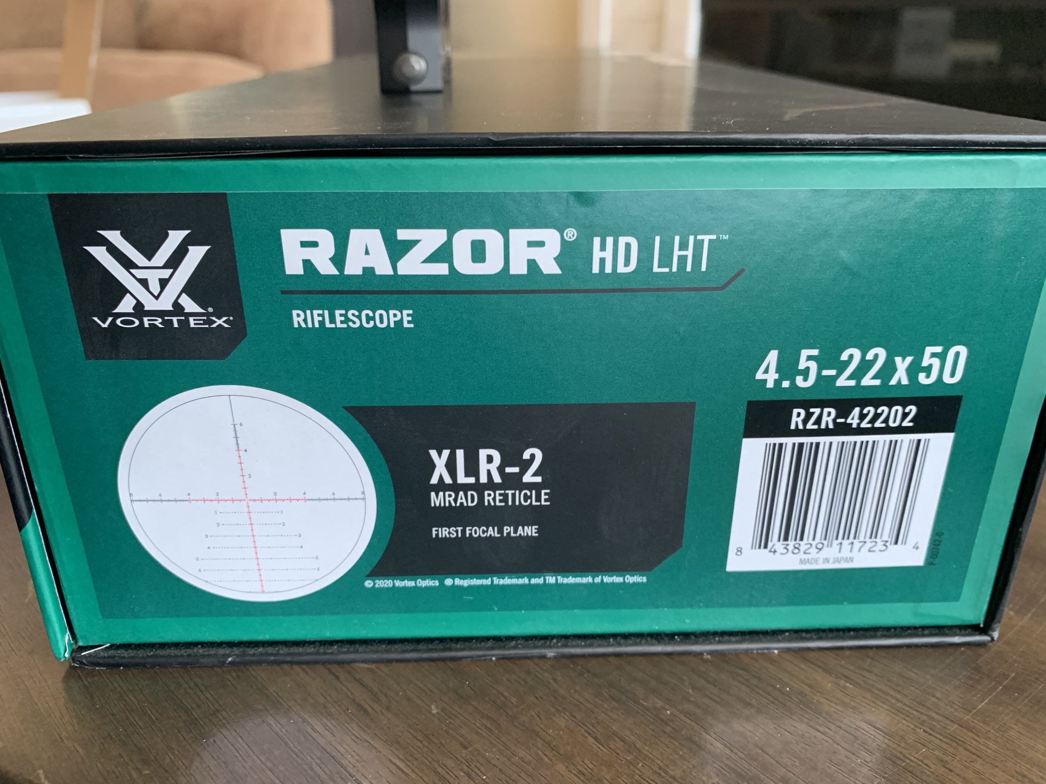 Razor LHT 4.5-22x50 with XLR-2 mil reticle. Only used twice, great scope.