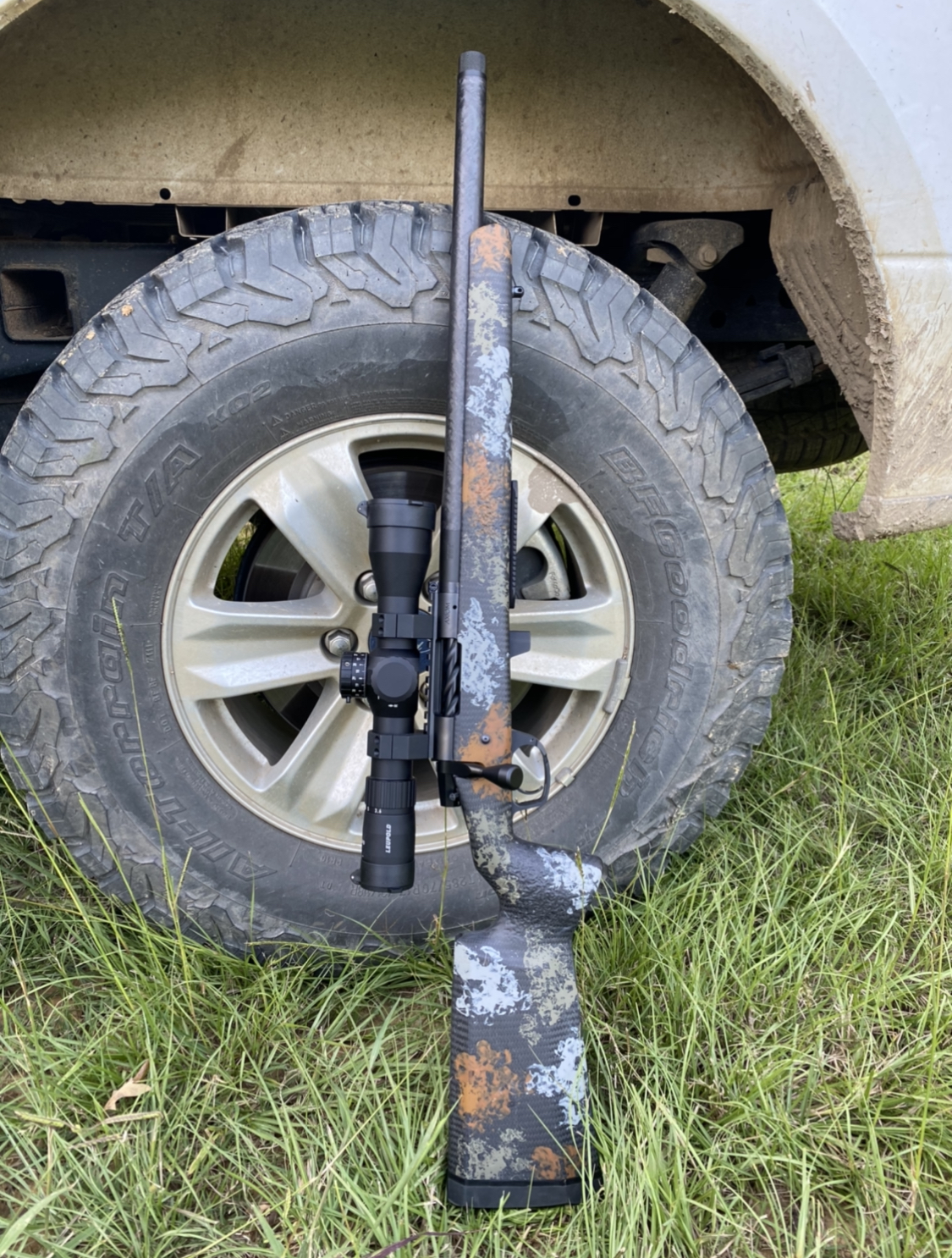 6.5" CM built on a Mesa Precision Summit Ti. Running 124 Hammer Hunters at 2900fps. Right at 8lbs total, scoped and suppressed with the Ultra 7.