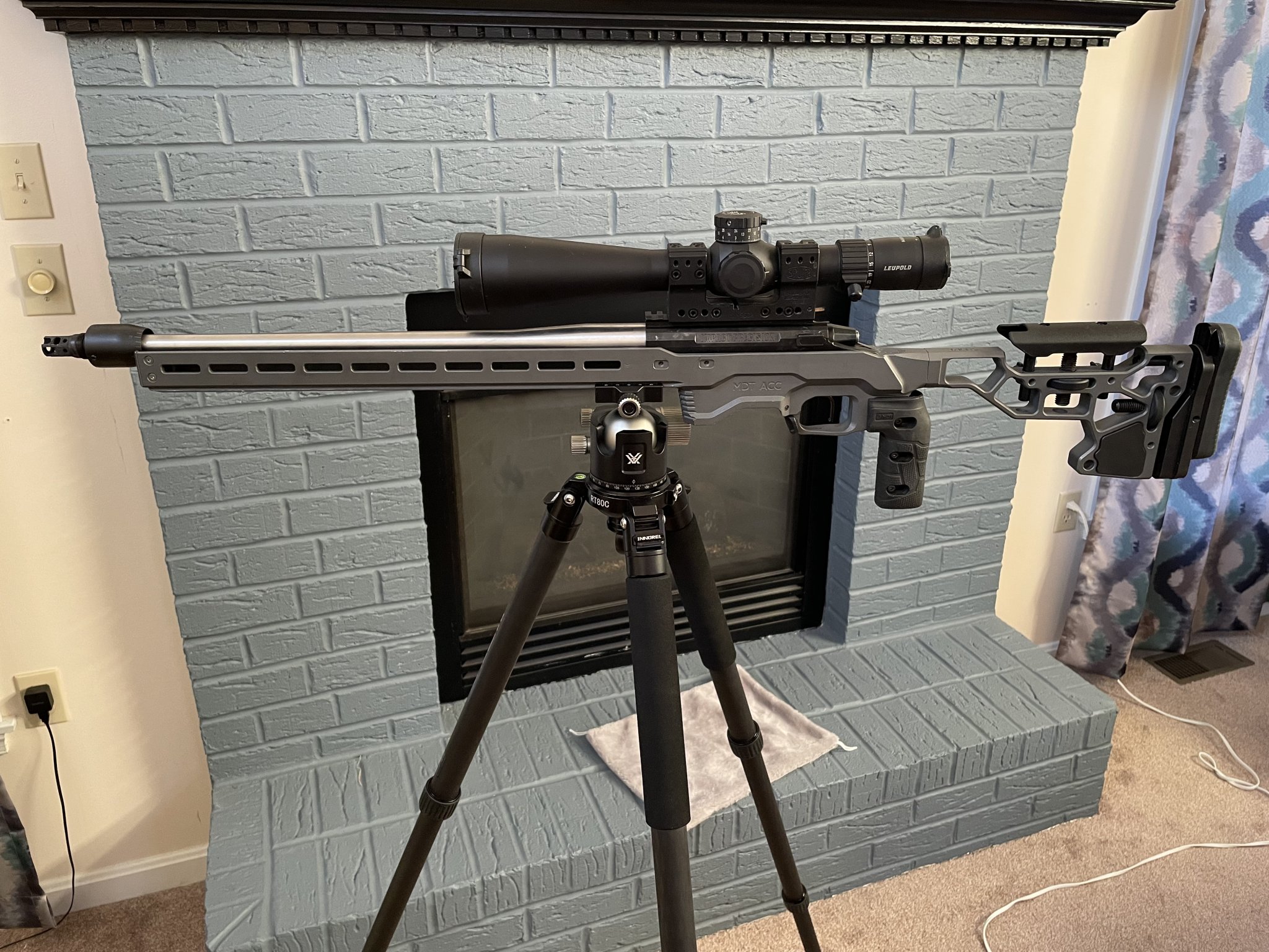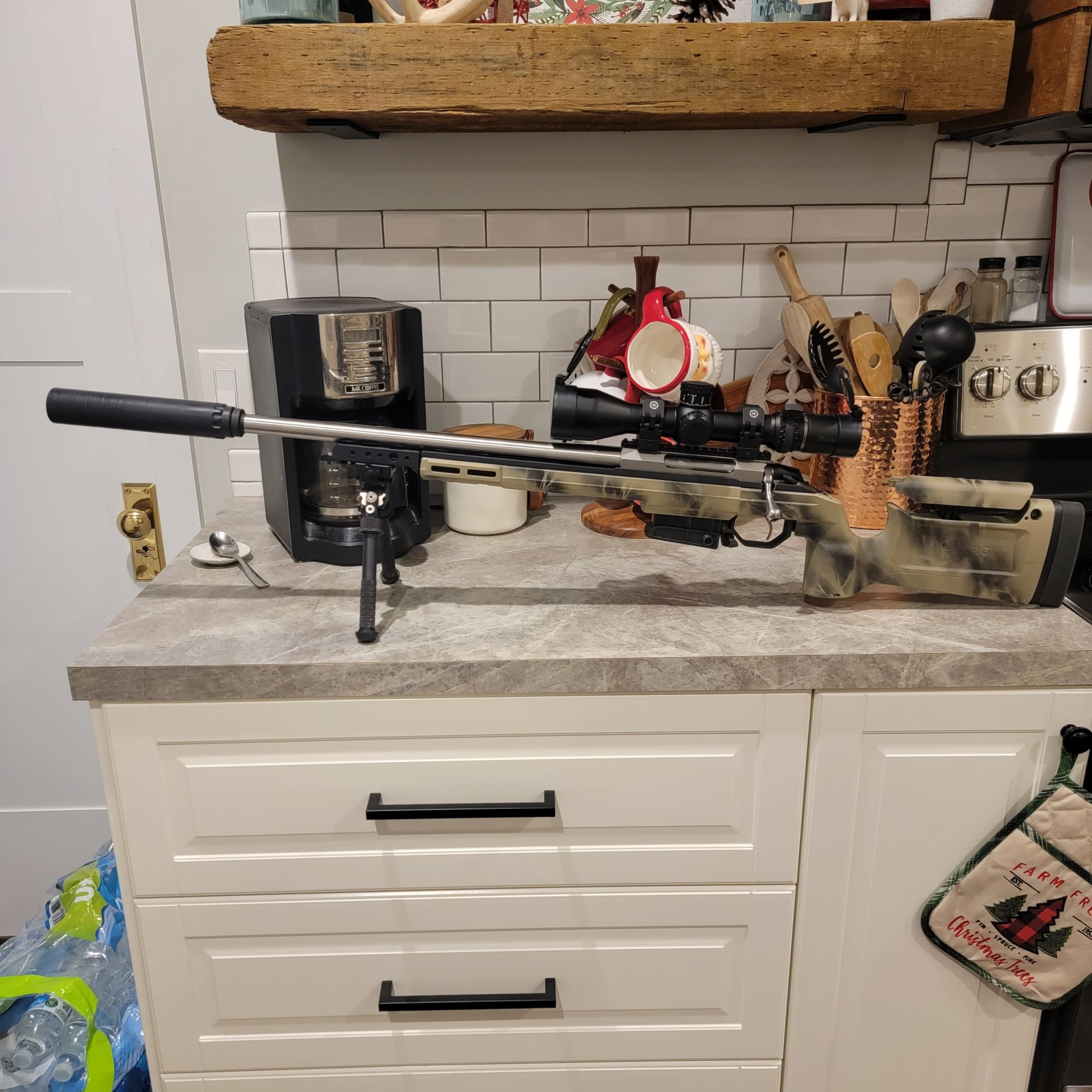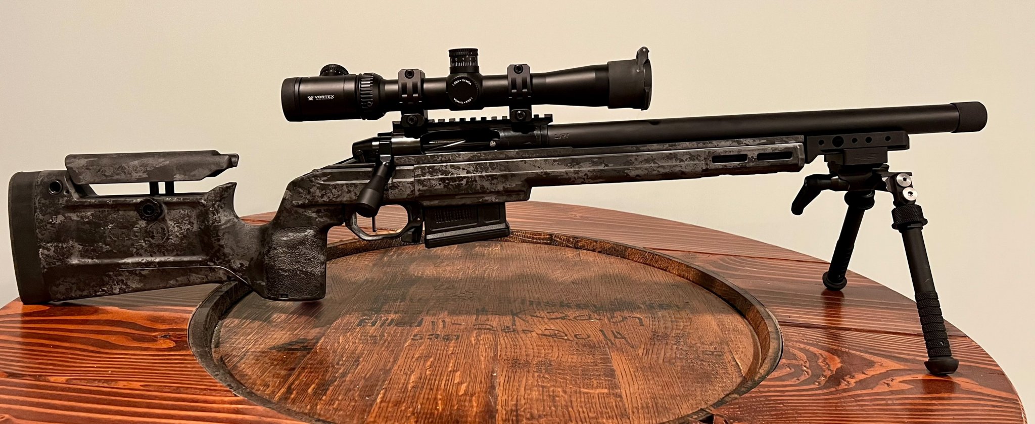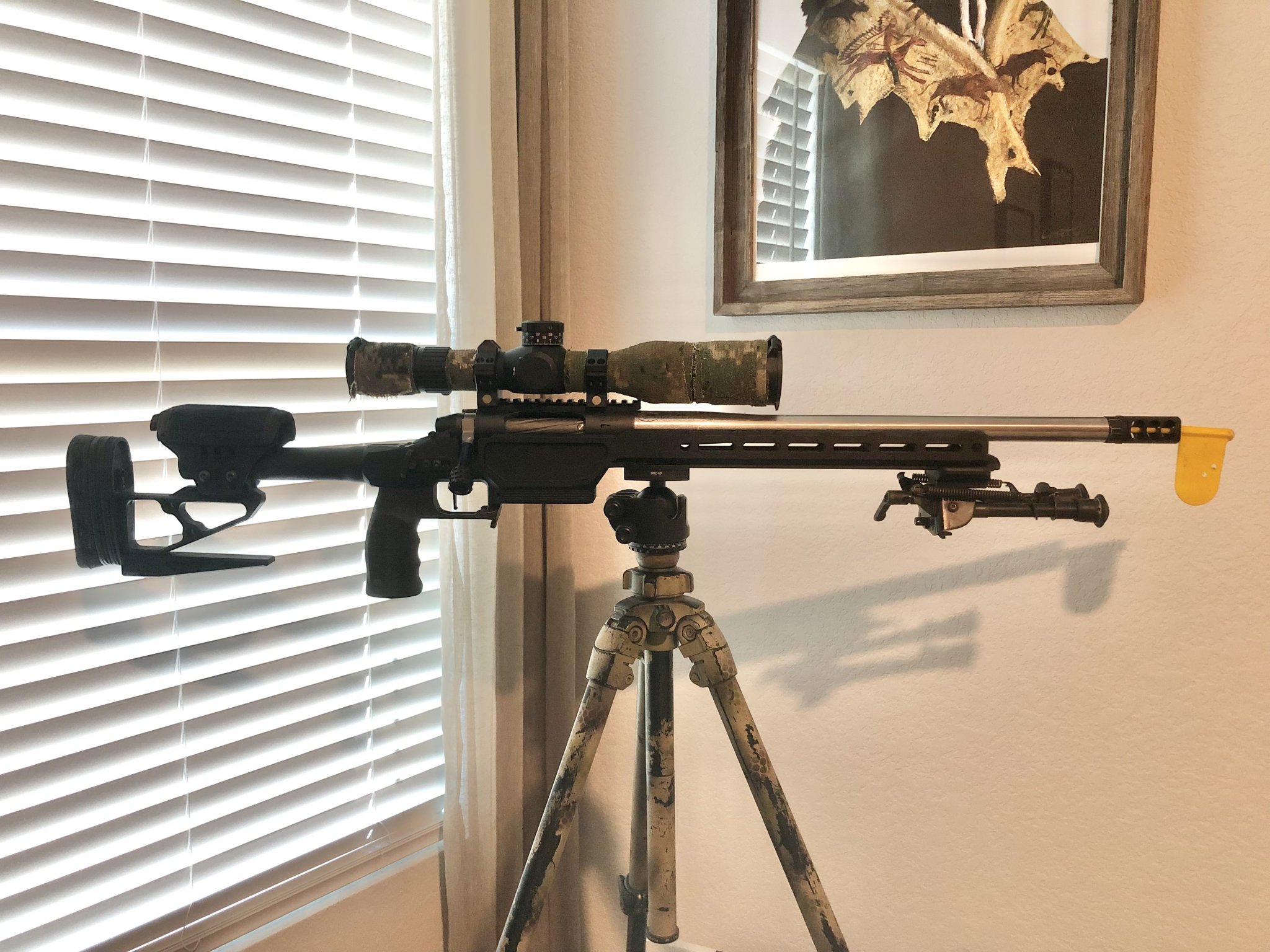 Barrel is an 18” Rock Creek blank done up by PVA. Had this Bighorn TL3 for about 5 years now. It’s sat in a few stock/chassis, worn a few scopes, and shot a couple barrels by now. Moved to Texas a year ago and got my first whitetail with it. In couple weeks I hope to have a Colorado Mulie buck and Cow elk added to the list for this particular barrel. Currently have tuned Sierra 130 TGK Gamechangers to reliably give me just over 1/4” groups going 2720FPS with very low ES/SD. All in all my circle of people and I are on the shorty band wagon!