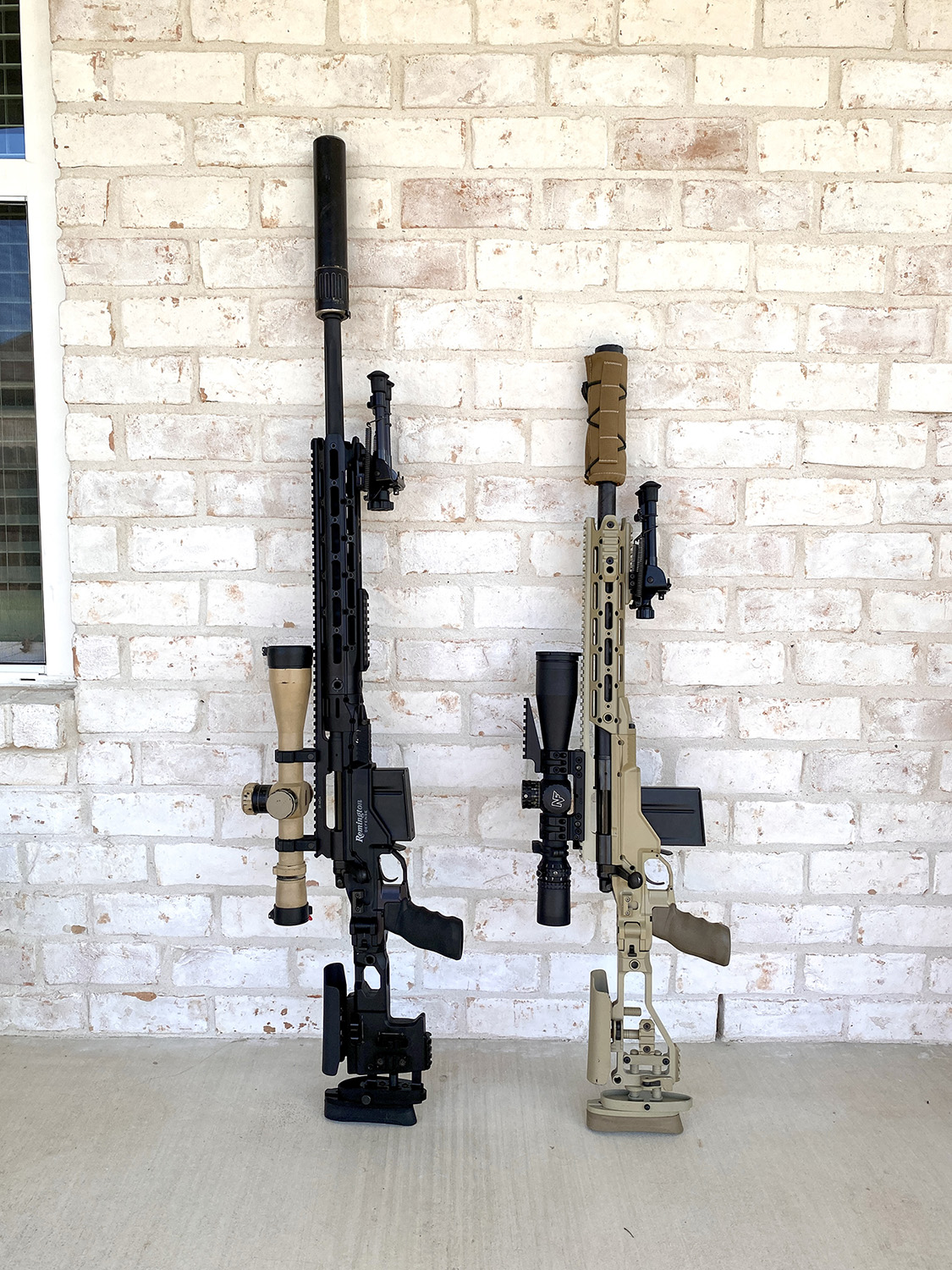 I bought my HIT because I really like their QC barrel system and had hopes of finding a different stock. I want to drop the HIT action into a KRG Bravo, with a 3-18 optic with a dive board and have a slew of shorty barrels for it, couple full length barrels, and a couple optics setups. Swap everything around at the range / in the field, rezero and be good to go. Ideally, id like a handful of CF barrels (5) in an XM3ish contour at 18.5", chambered in 308/6.5cm/6.5prc/22cm/300wsm with Griffin PSR OTB muzzle brakes, and a Griffin PSR 7 OTB suppressor (I have the PSR 5 its awesome, but 22 cal only, the PSR 7 is the 30cal). Also keep a couple 24" barrels, like a 308 and a 6.5 creed. Reasoning for my cartridge choices is, 308s for those times when ammo is scarce/SHTF, its the most commonly available of those listed, 308 also for subsonic suppressed. 6.5cm because for me, its my cartridge of choice for general purpose use. 6.5 PRC because I have 2 already and love the cartridge, i think for an all around chambering that can work on small stuff up to elk (within reasonable distance and shot placement) its the best all round hunting chambering right now (for the things I hunt), the 300wsm because I think a shorty XM3ish rifle in 300wsm would be bad@$$, and 22creed just because I think it would make a sweet groudhog rifle and my kids could shoot it. I wouldnt buy all the barrels at once, but when I wanted to try something else, all I need is a barrel spun up for it. Put it in a nice case with cutouts for all the barrels/optics/accessories.