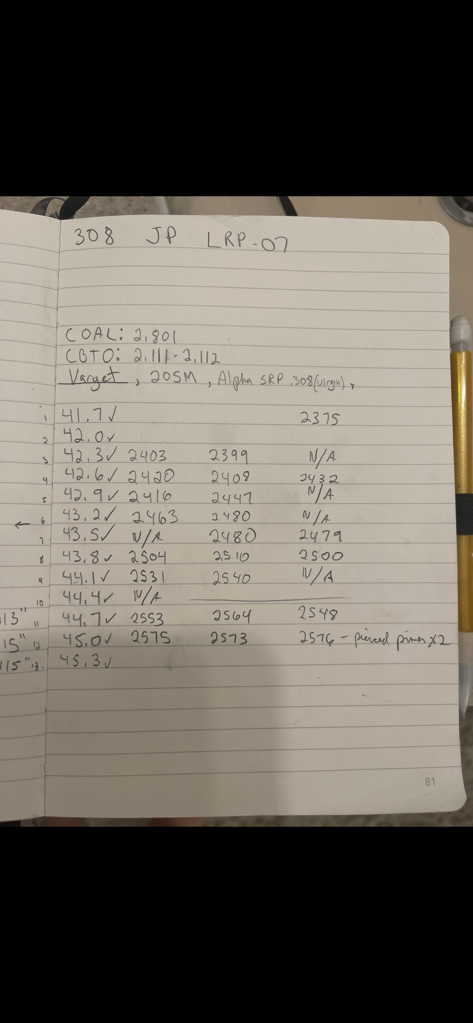Novice reloader here. I did a OCW test this weekend with my 308 in a 16" barrel. Overall very pleased with the 175 smk results with varget.