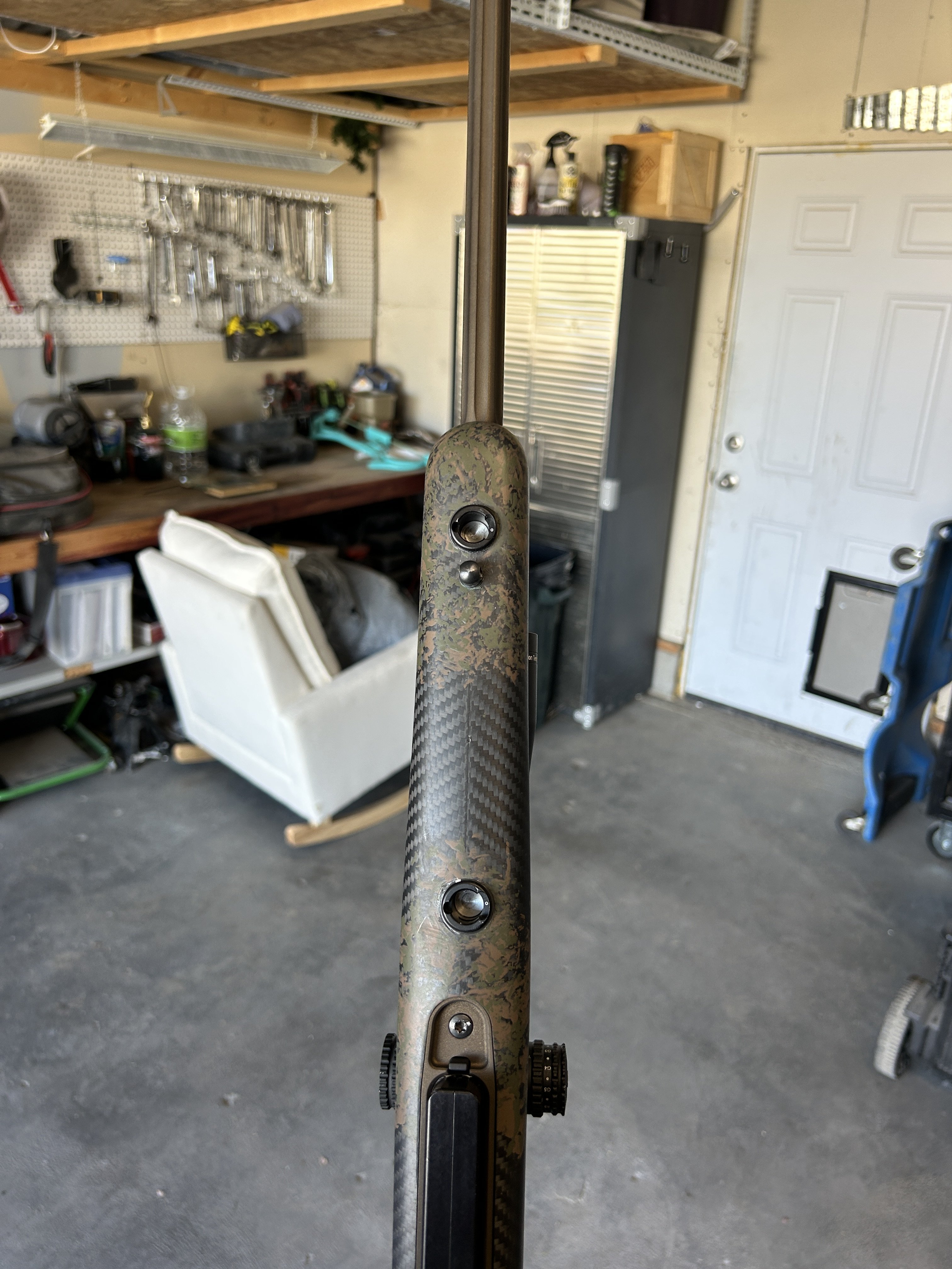 Began life as a tikka veil. Barrel was cut to 18” by class 3 machine and threaded 5/8-24. OMR fluted bolt shroud, Lumley carbon bolt knob. Stock and bottom metal have sold. Very accurate with 140 bergers at 2700 or so. Didn’t quite finish developing a load. Factory mag and one modified HCA mag will be included if the buy would like.