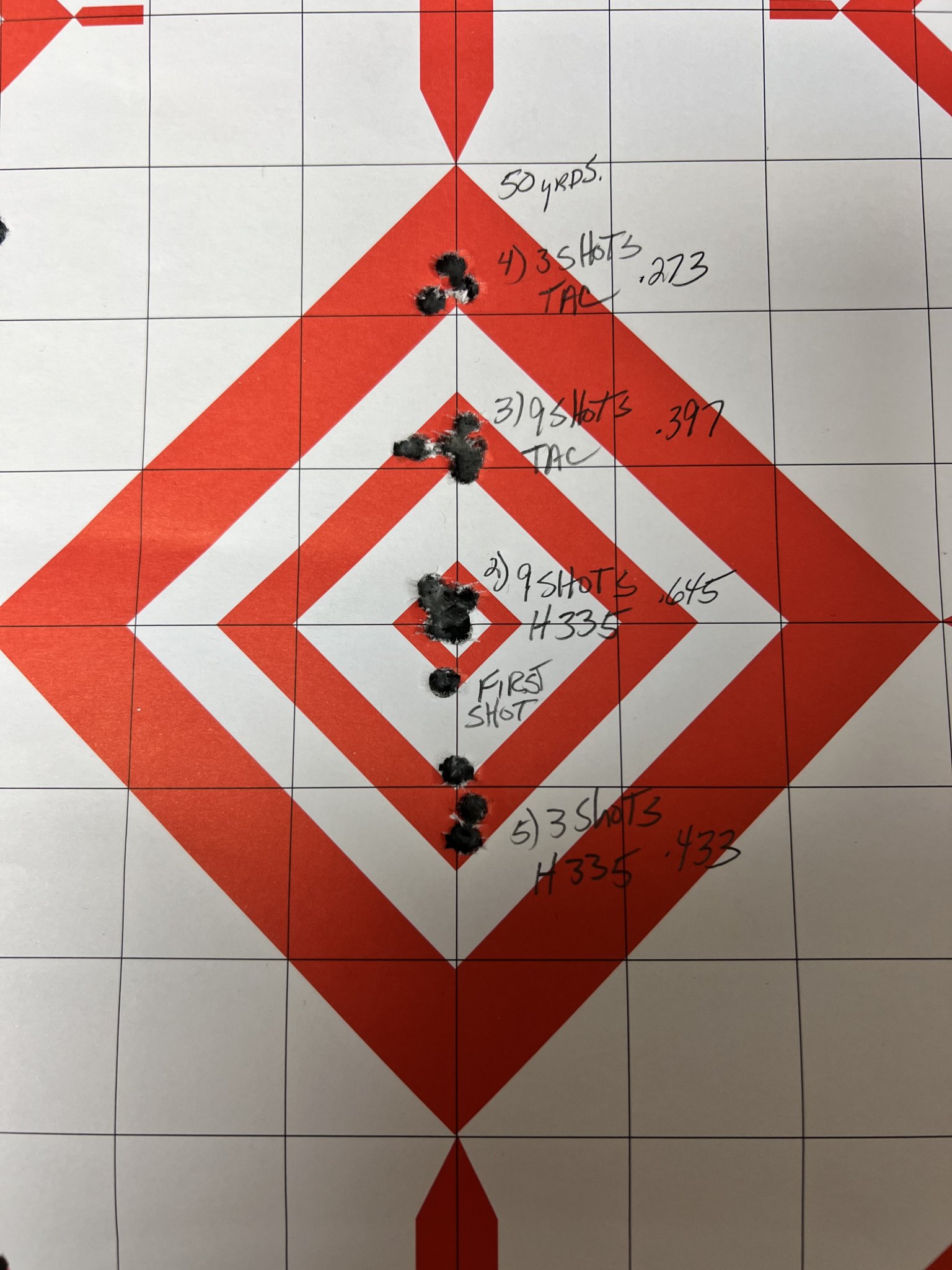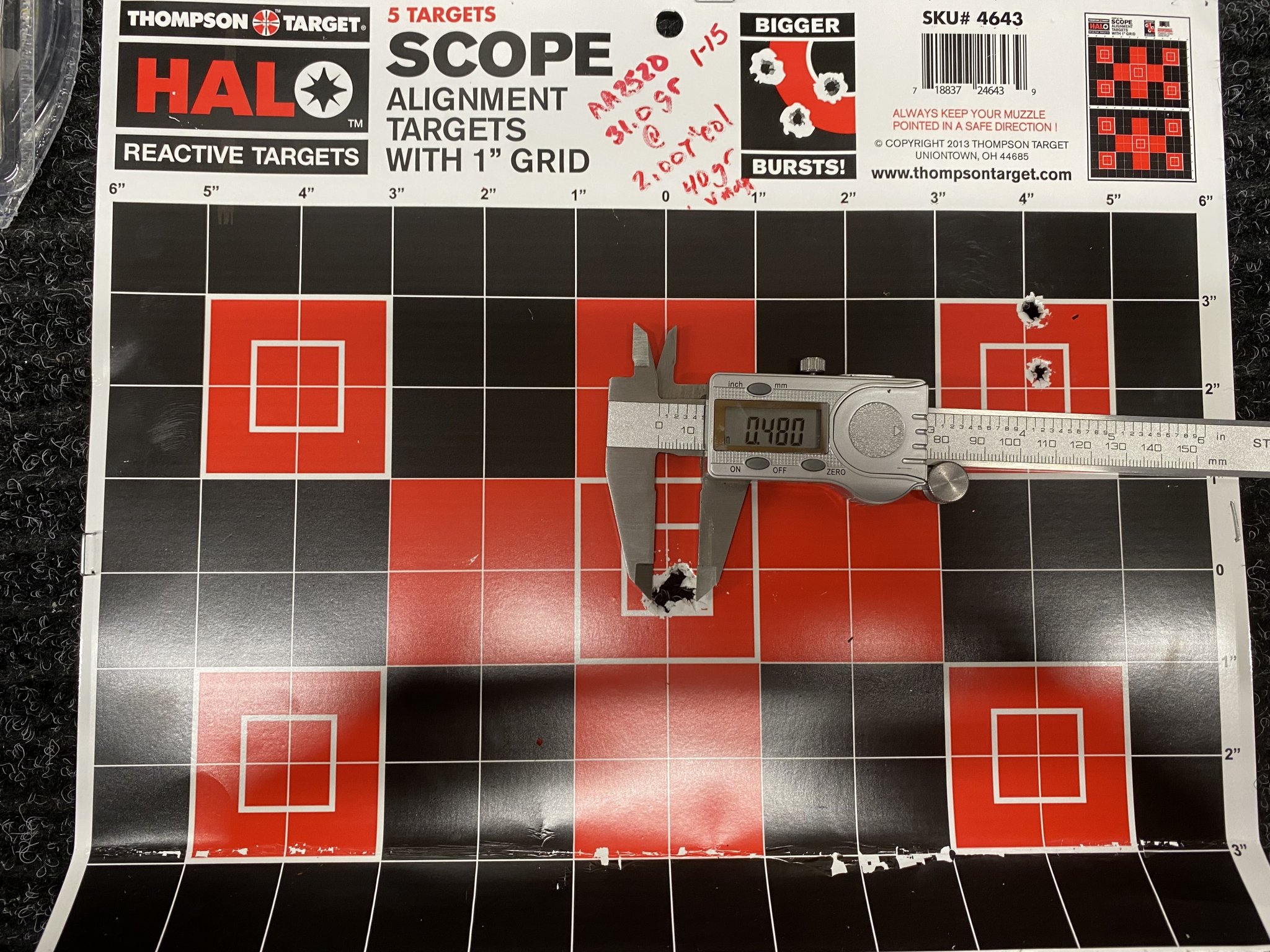 Just finished a 20 practical AR build. My first subcal. Shot it the other day at 50 yards after laser aligning the scope and for breakin purposes. So impressed with accuracy and minimal to zero recoil. First shot was low but the rest grouped very well