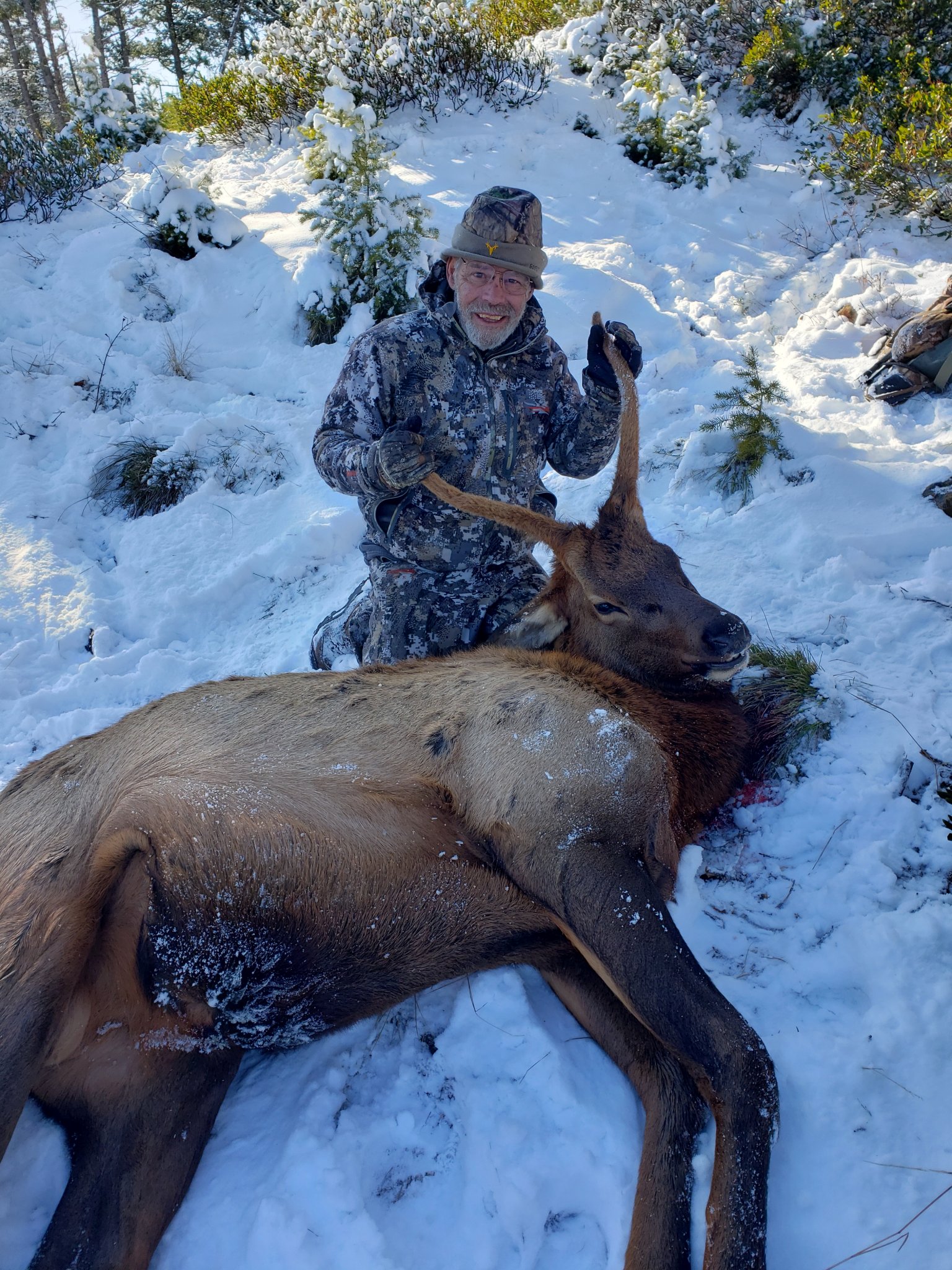 Cow Elk hunt in Arizona a couple weeks ago. With all the hunting pressure, I was not optimistic on our chances. Third day we spotted a herd off in the distance and were able to close on them despite the open terrain. We ended up dropping 3 that morning.