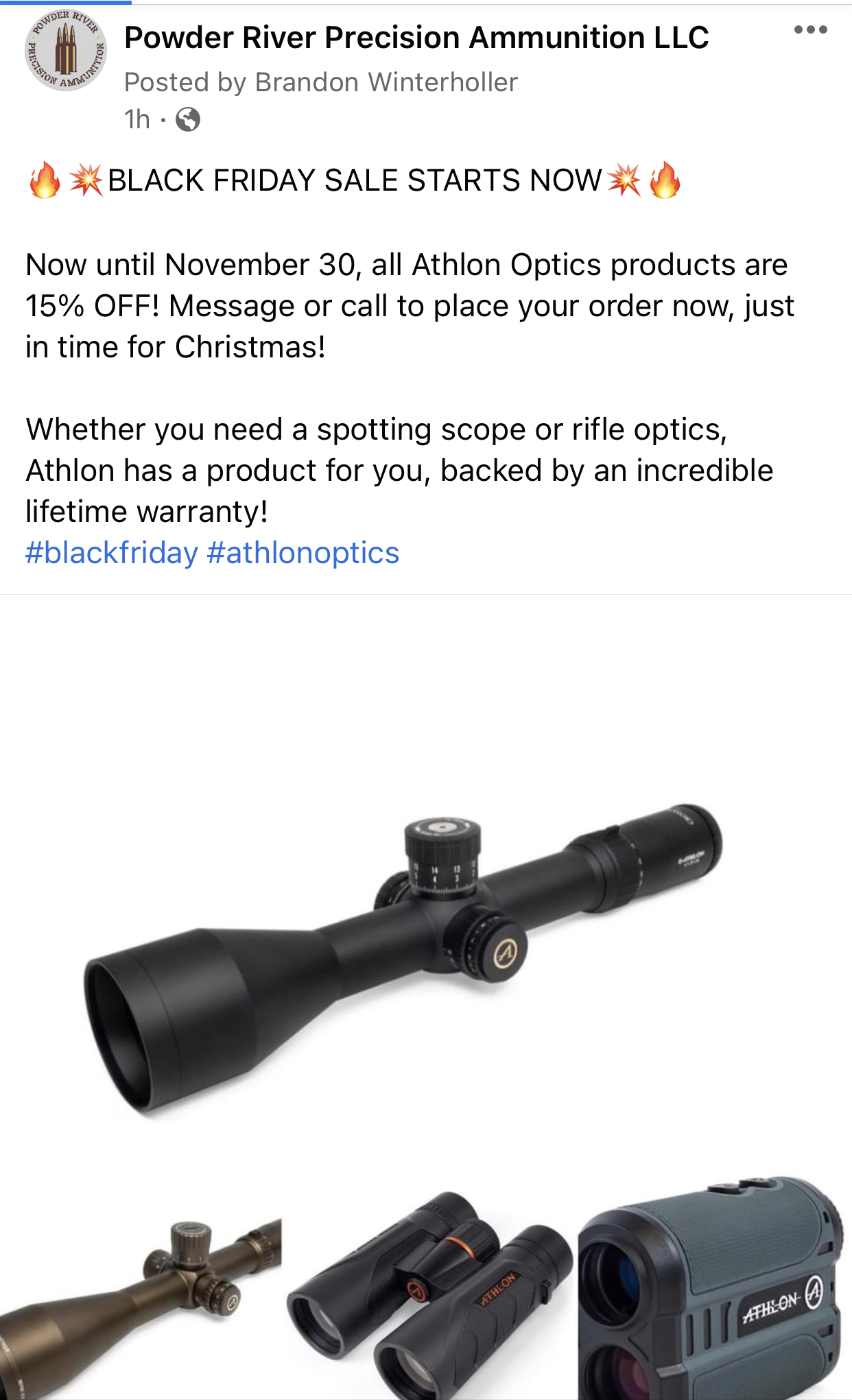Our prices have been pretty fixed for several years. It is with disappointment that I must announce that on January 1st the cost of our barrels is going to increase approximately $35 across the board to cover the increased costs of production. We do not currently foresee a price increase on bullets happening before April 2021 but the copper and overall metals commodities markets have gone up substantially in the past few months and we have to react to it.