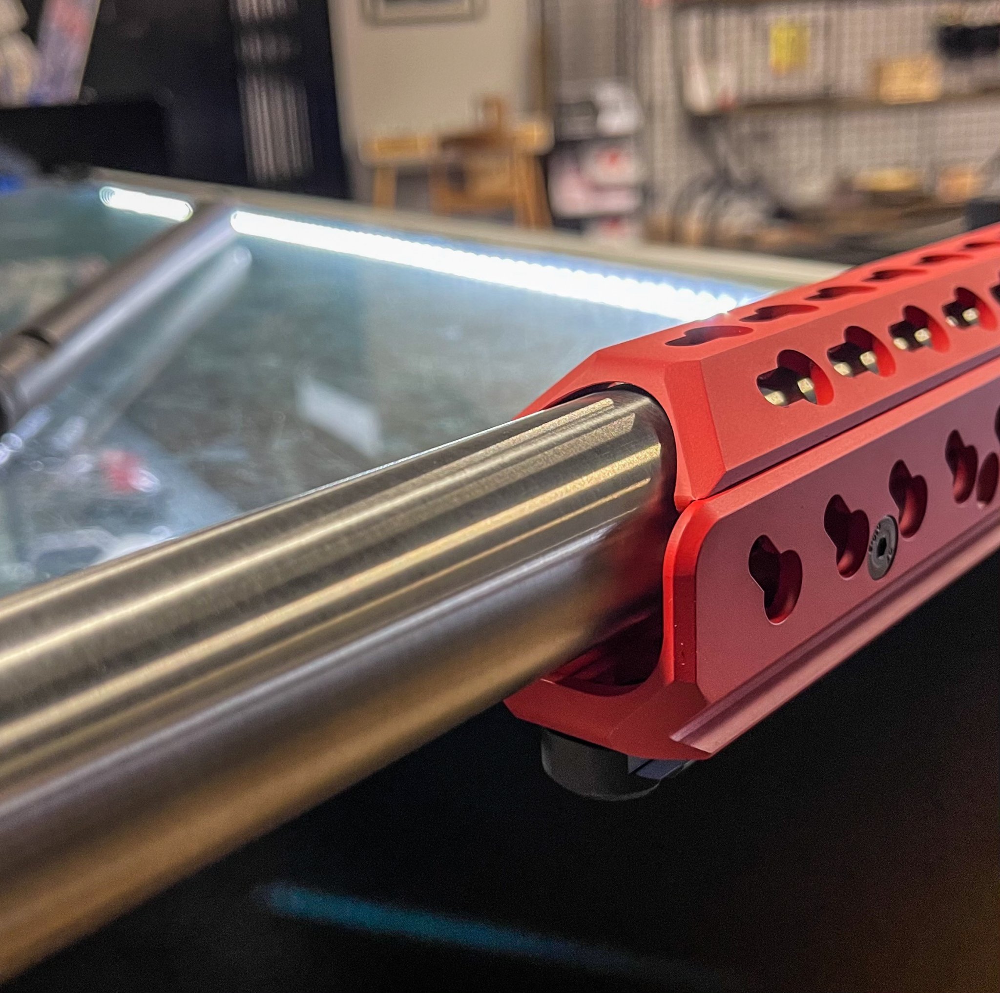 Without the weights, the rifle weighs 21-22lbs. Each weight weighs .5lbs. It's wild how much a difference it makes to add the weights to get a wider footprint, in stabilizing it.