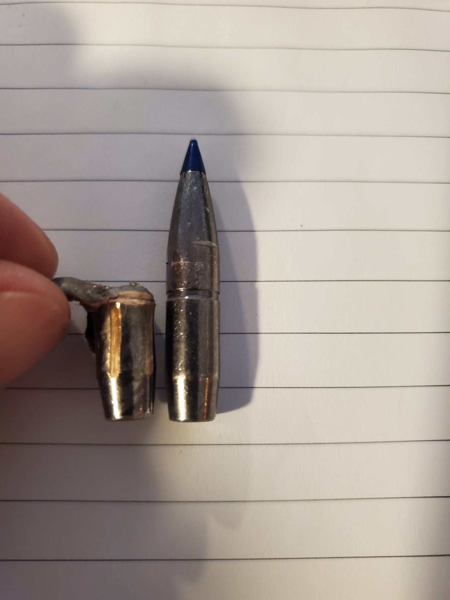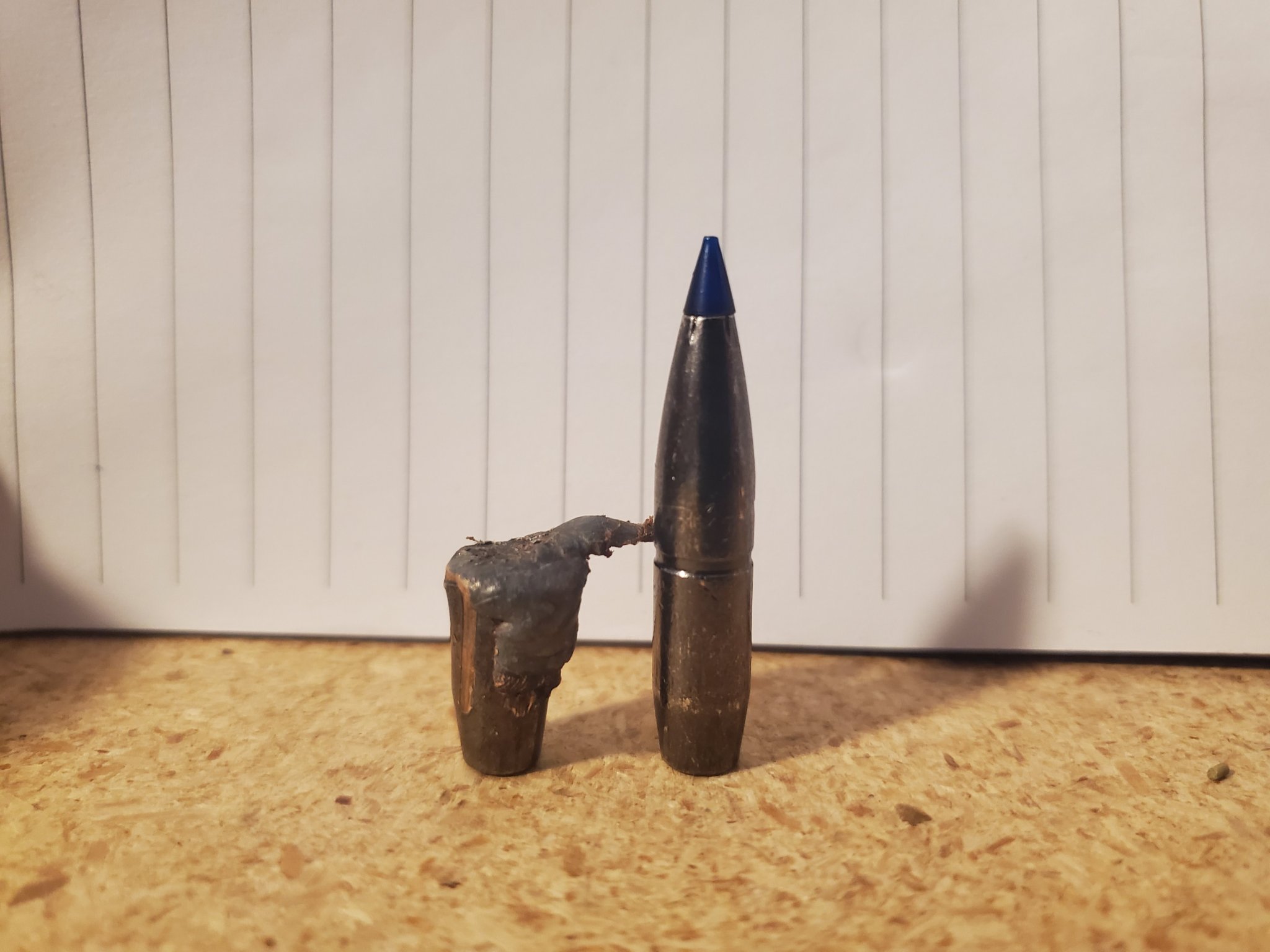 Haven't recovered one yet. Impact velocity on the elk was around 2600fps it absolutely destroyed the chest cavity and exited through the shoulder she was on her feet for about 2 secondsThat is some serious velocity...How did the bullets fare?