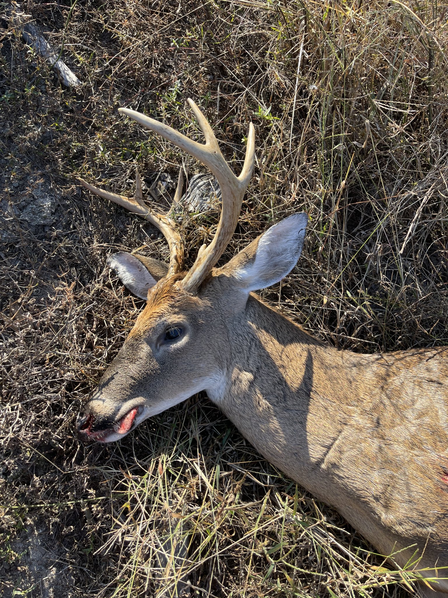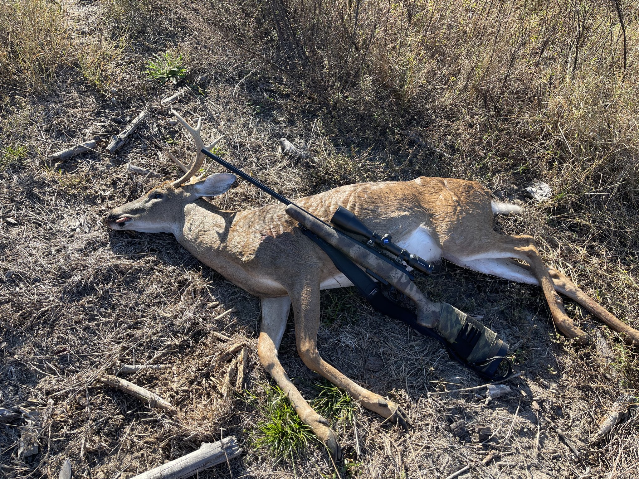 Let‘s see that smokepoleOklahoma muzzleloader season and I'm out with my smokeless. Had a tiny one pop up and thought what the hell. I've never seen a deer actually knocked off it's feet before. That 300 grain bullet at 2900 fps does a number. Took the far side shoulder off. Not a ton salvageable, but it's going to make some good bacon. No pics, but a person could fit their head in the exit wound.