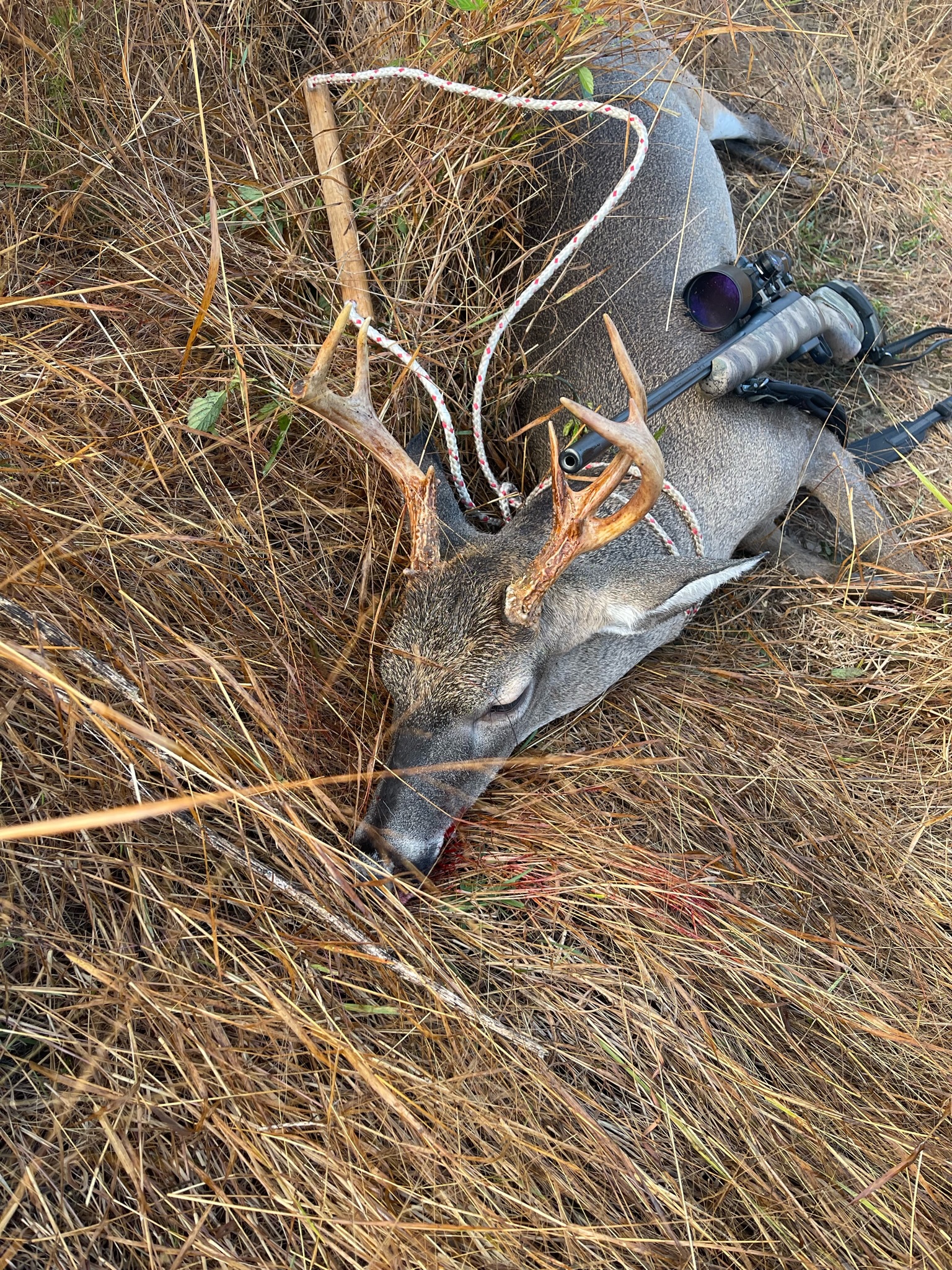Daughter. About 200 yards. 77gr TMK through the shoulder. Didn’t go far.
