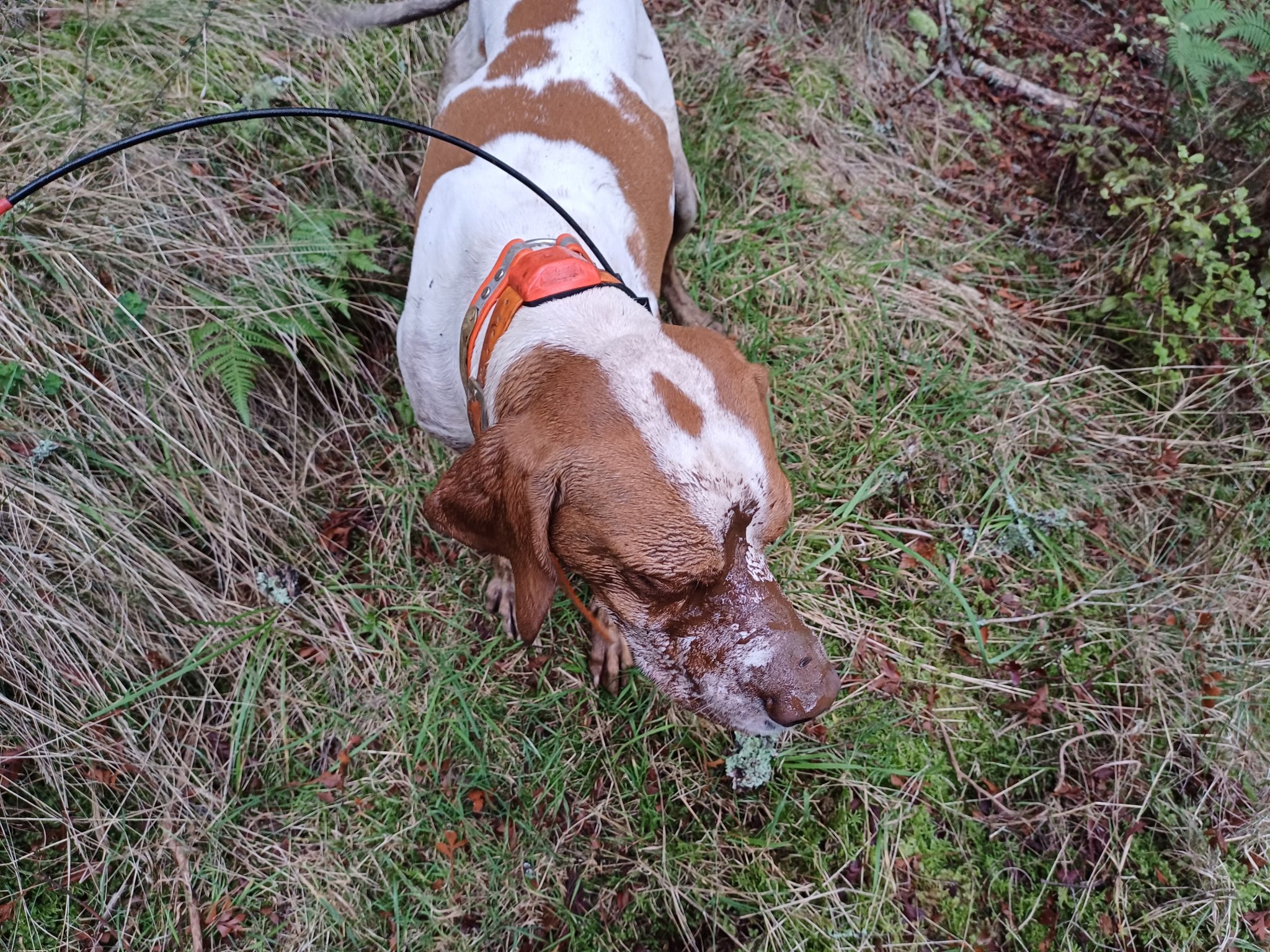 Stood on my pond berm to get a better vantage point, and found him right below me at the water's edge. Went about 60-65 yards total.