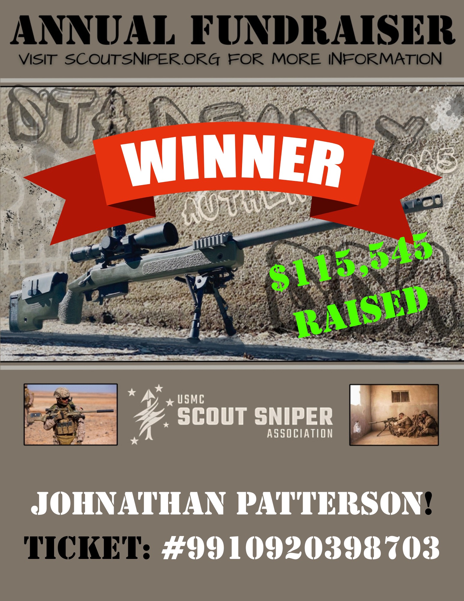 The M40A5 rifle raffle was amazing successful, and we ended up raising $115,545 for the Scout Sniper Association! Thank you, gentlemen, you really knocked it out of the park with this raffle!