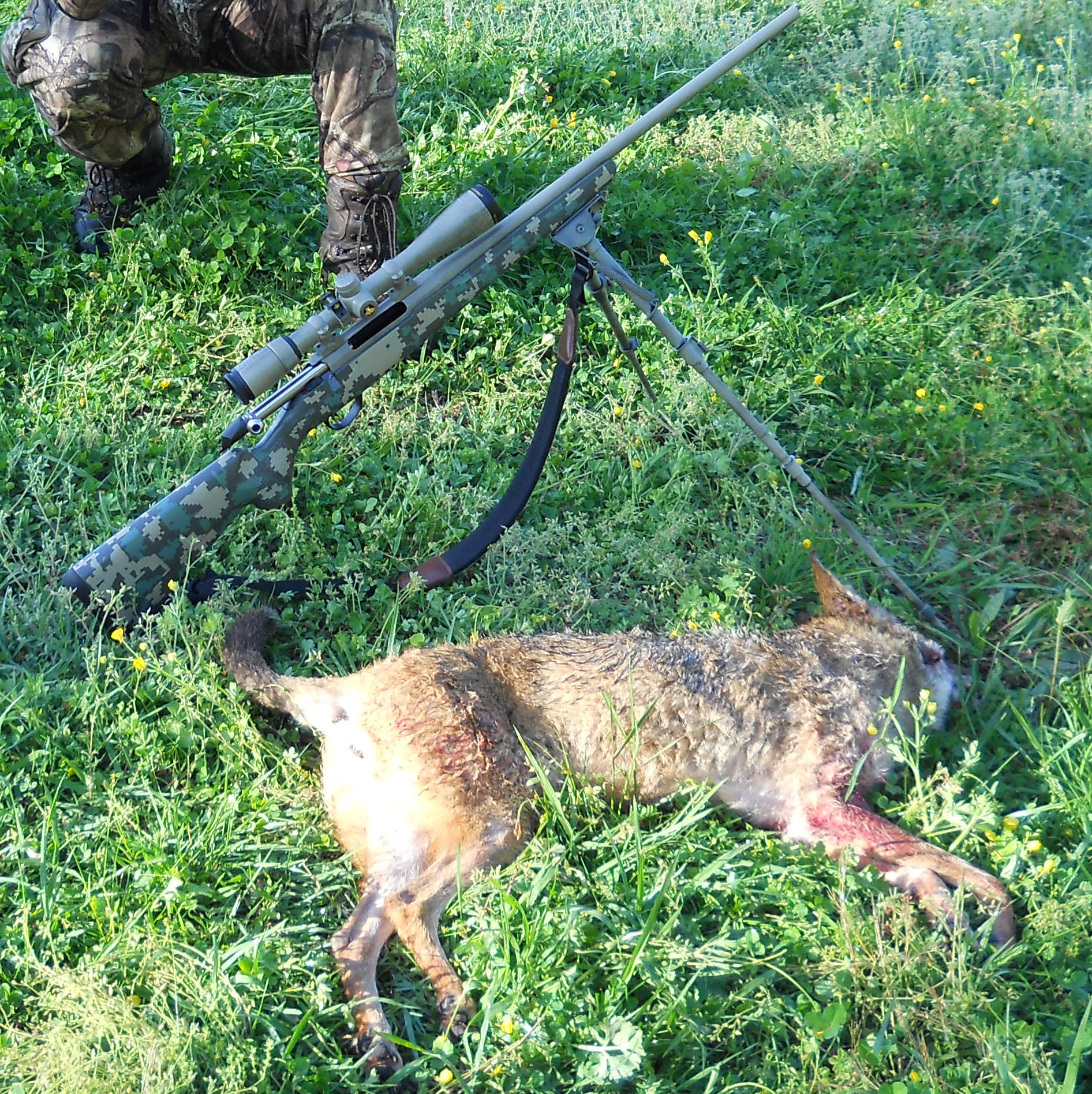 Honestly, in the current highly pressured coyote hunting environment, I’d shy away from the 22-250 (a phenomenal yote cartridge in all regards) and lean towards a truly long range capable round like the 6.5 Creedmoor, 6mm CM, or 6 BR. The smart dogs you encounter late in the season won’t come running to the call inside of 300-400 yards so you need to be able to connect out to 600 or so in field conditions (i.e. cold, windy, non-bipod shots). At best, with factory (i.e. sub $2K) rifles, the 22-250 can launch a good 60 gr Nosler BT out to 400 yards with killing accuracy. My best 22-250 kill was at 370 yards. With the 6.5 CM, I’ve connected on an effortless 381 yard off the bipod and another at 321 yards off of shooting sticks. Often times, it’s better to ditch the caller and go to pure spot and stalk hunting where long shooting is a must.
