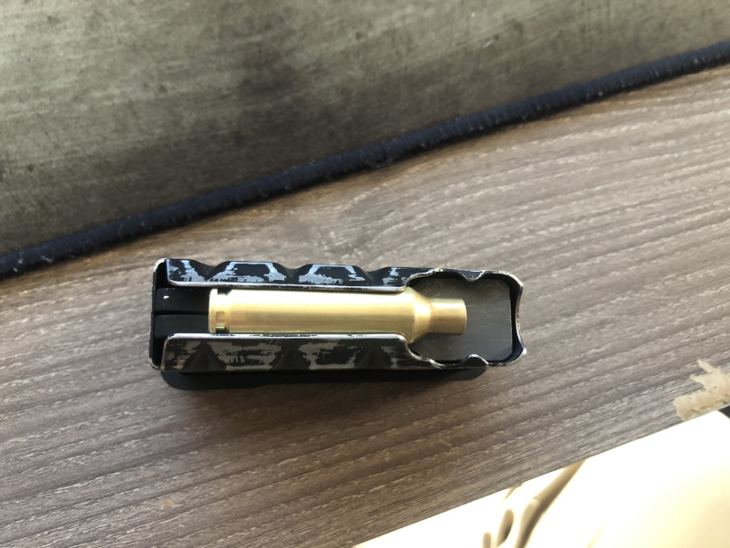 They mentioned chamfering the case mouth before sizing down, so I gave that a whirl. Worked like a charm, I'm about halfway through my 500-case batch and haven't lost a piece yet. So: 0.247" die neck, plenty of One Shot, and inside/outside chamfer is the ticket. The inside's only really for bullet seating and to try to minimize how much brass residue the nitride mandrel picks up, just the outer chamfer is needed for smooth neck-down.