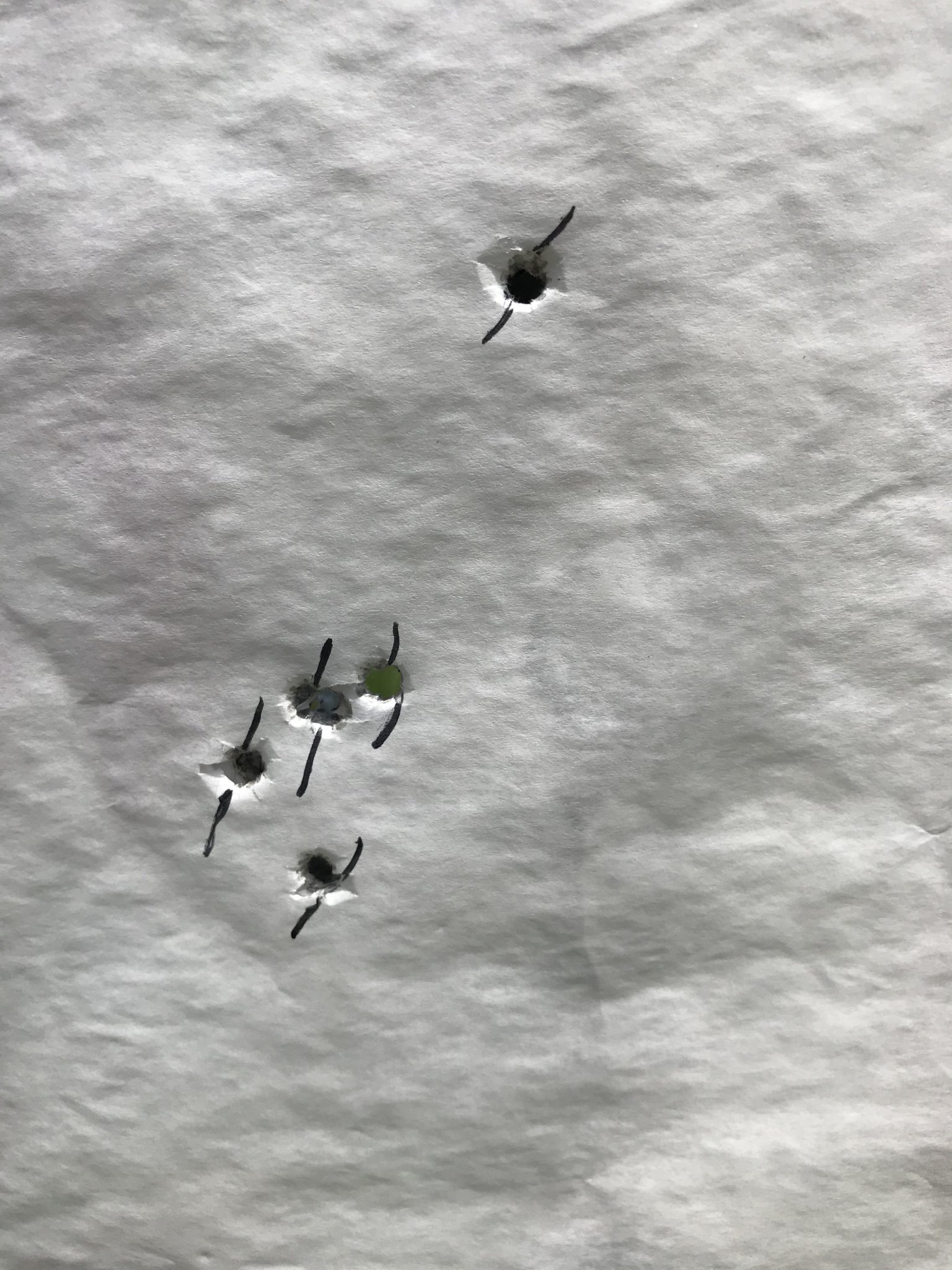 The wind kicked up a bit shooting 95's, and I felt like I may have pulled a couple. But it was all still in 4" and I'm betting I know where the three in the middle came from. Gonna load a few at 30.3 and see what happens on this one.