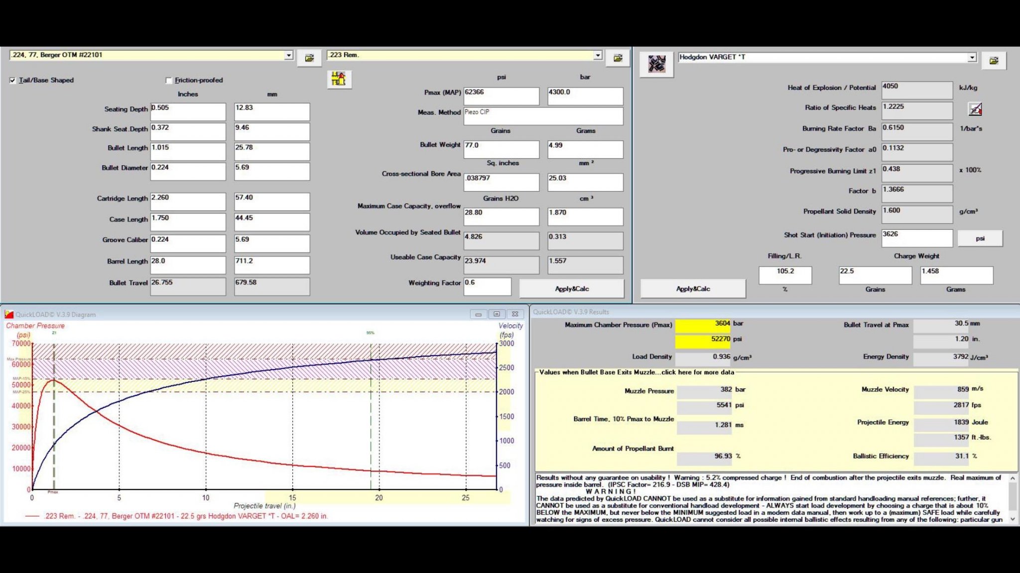 Berger has a max Varget charge listed at 22.5g. Without running it through quickload it seems mighty conservative. May I ask if anyone has any real world input.
