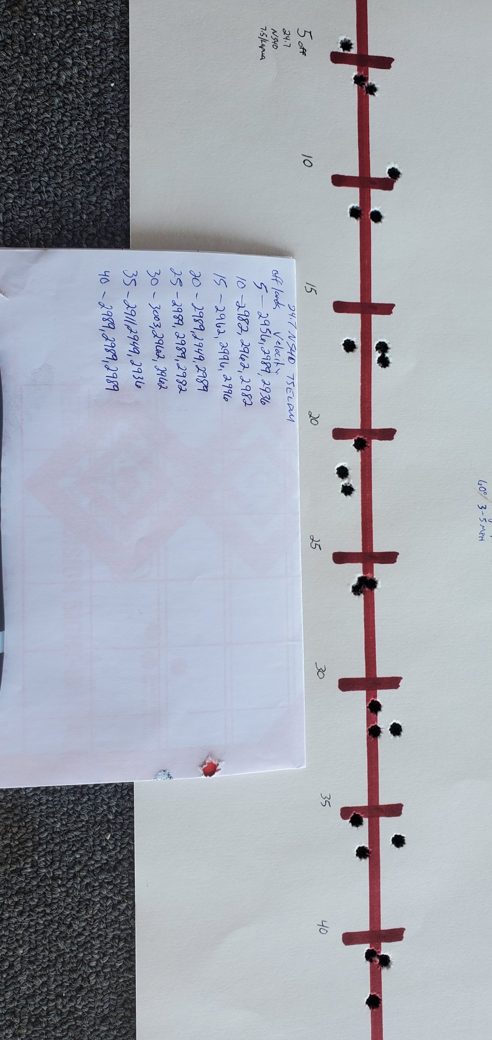 Ok, so just got back from the range with another seating depth test. Did 3 shot groups at 5 to 40 off in 5 increments. Hoping 25 off is repeatable as it's 1/4 MOA with an ES of 7.