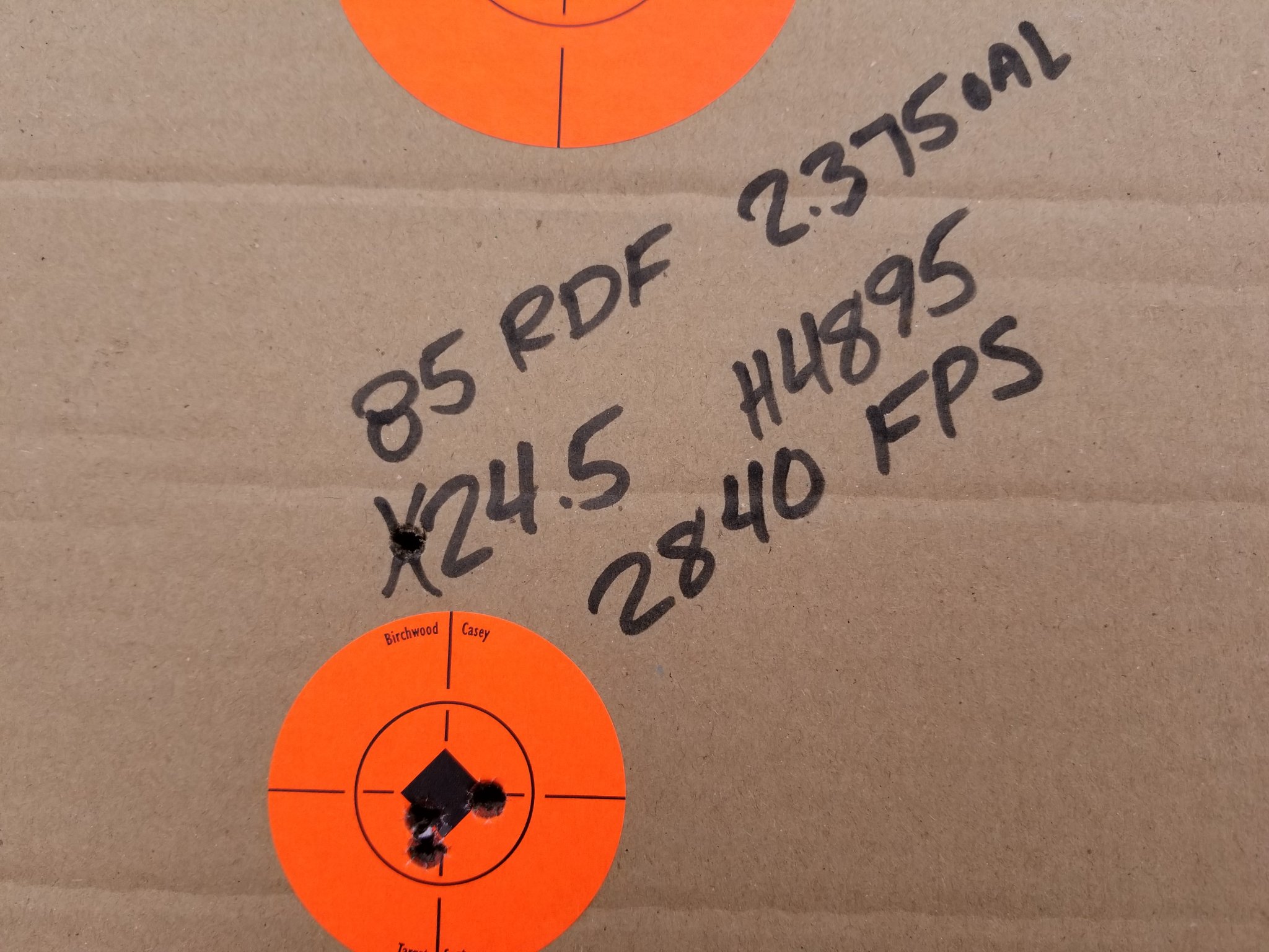 I don't remember how much powder, but I ran the 85 RDF at 2750fps in a 20" barreled 22 Nosler gas gun, and 3000fps in a 24" barreled 223AIWhat charge and MV?
