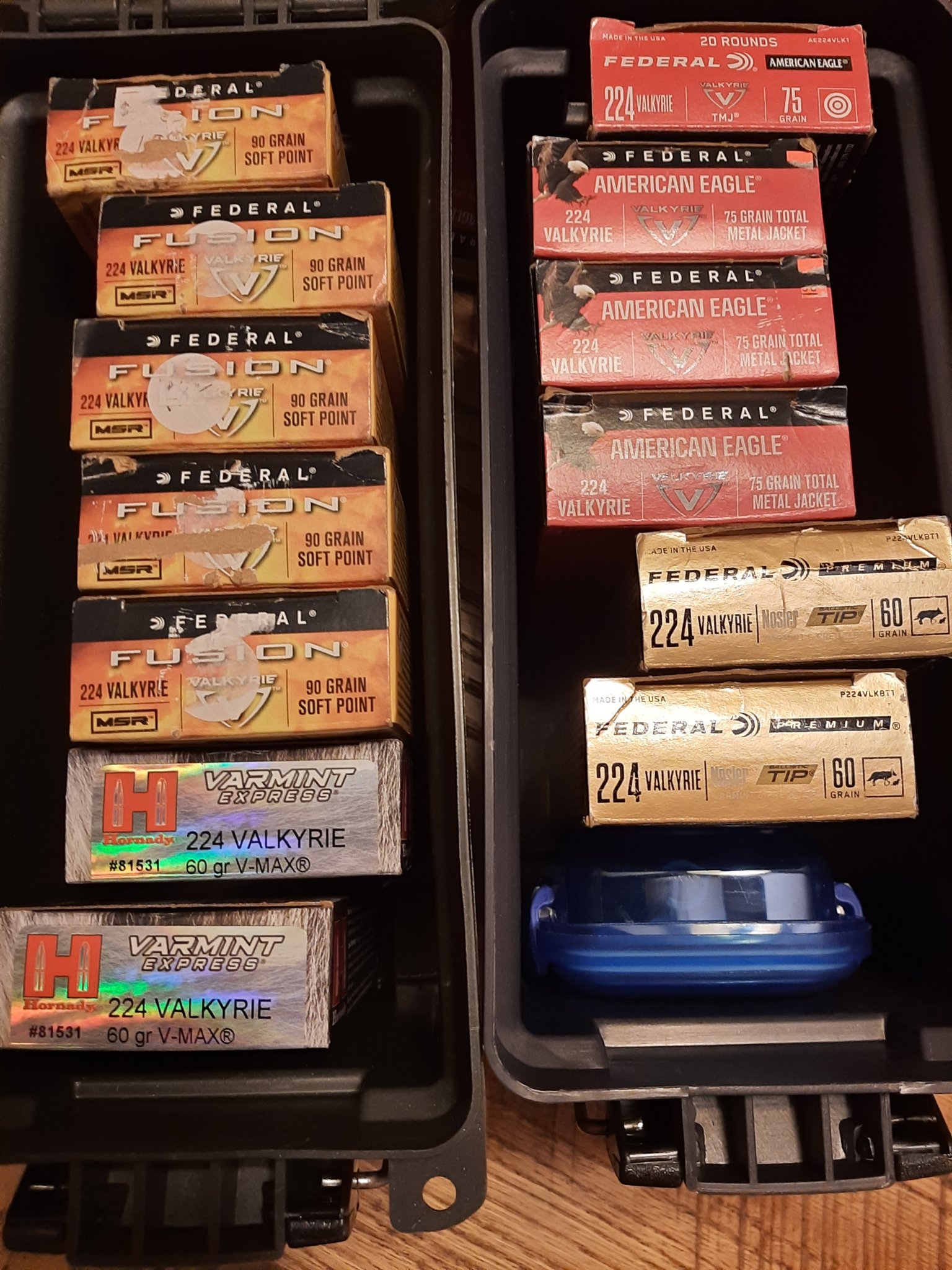 224 Valkyrie ammo, brass, and bullets. Also have a set of hornady reloading dies, no pics presently, would include with any purchase for $35. I will not split the ammo up or the brass. But will sell the brass, bullets, and ammo as separate batches.