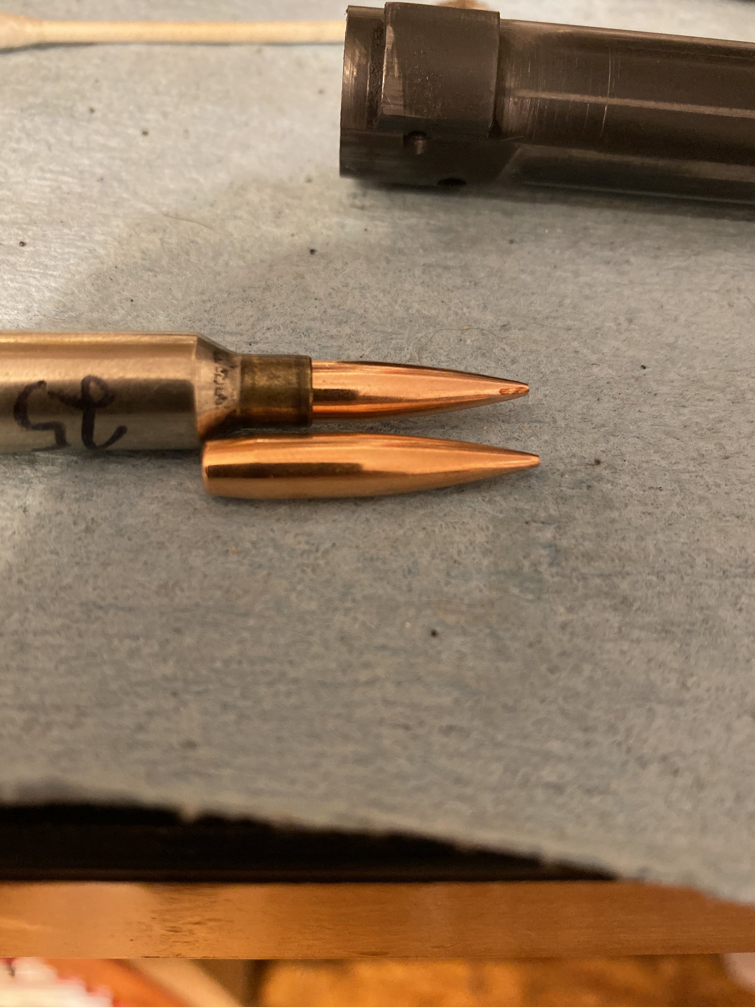 I'll be working on 90 grain stuff as well. I started out with 20 thou jump and with that there was a whole lotta bullet inside the case using the 95 grain Sierra
