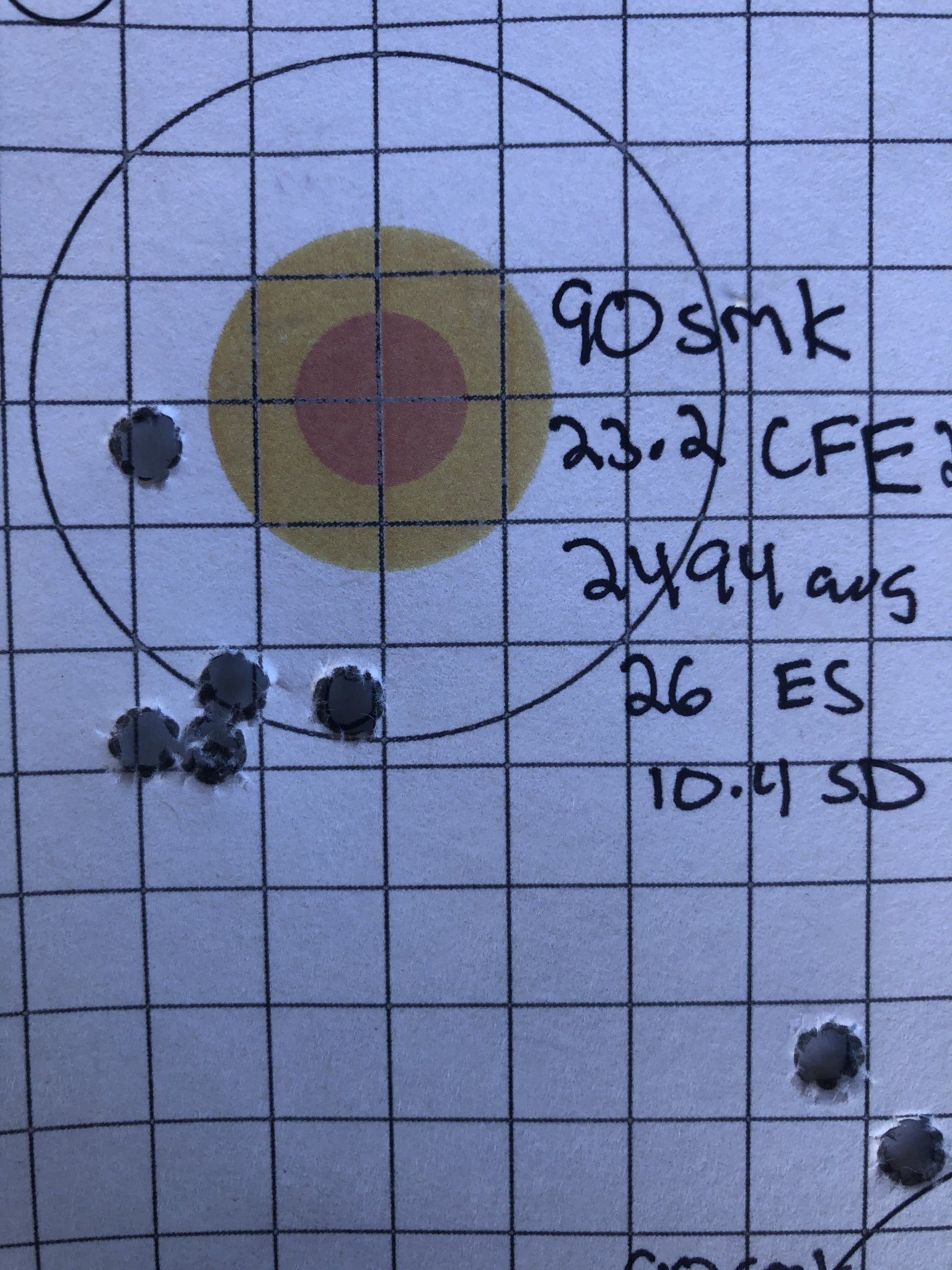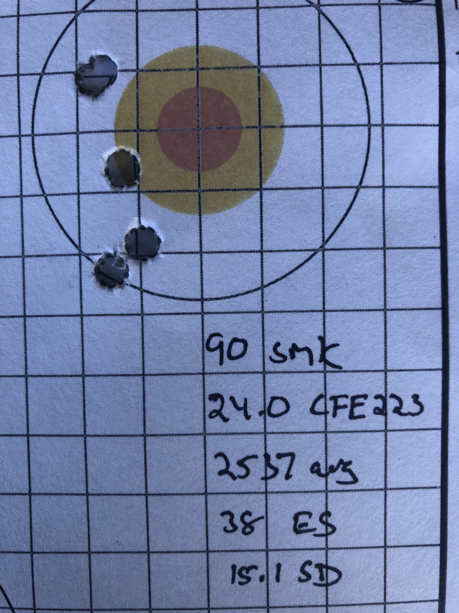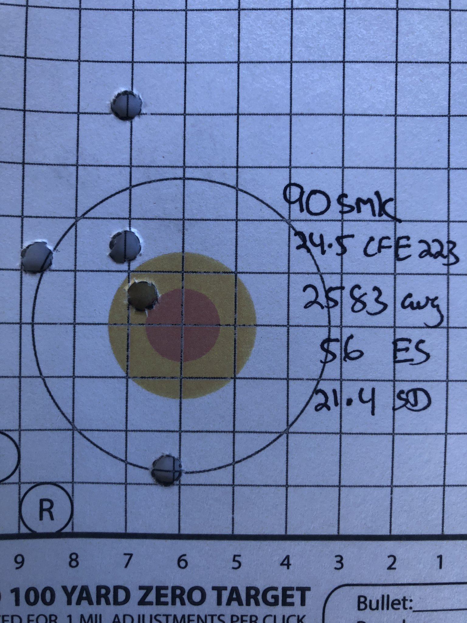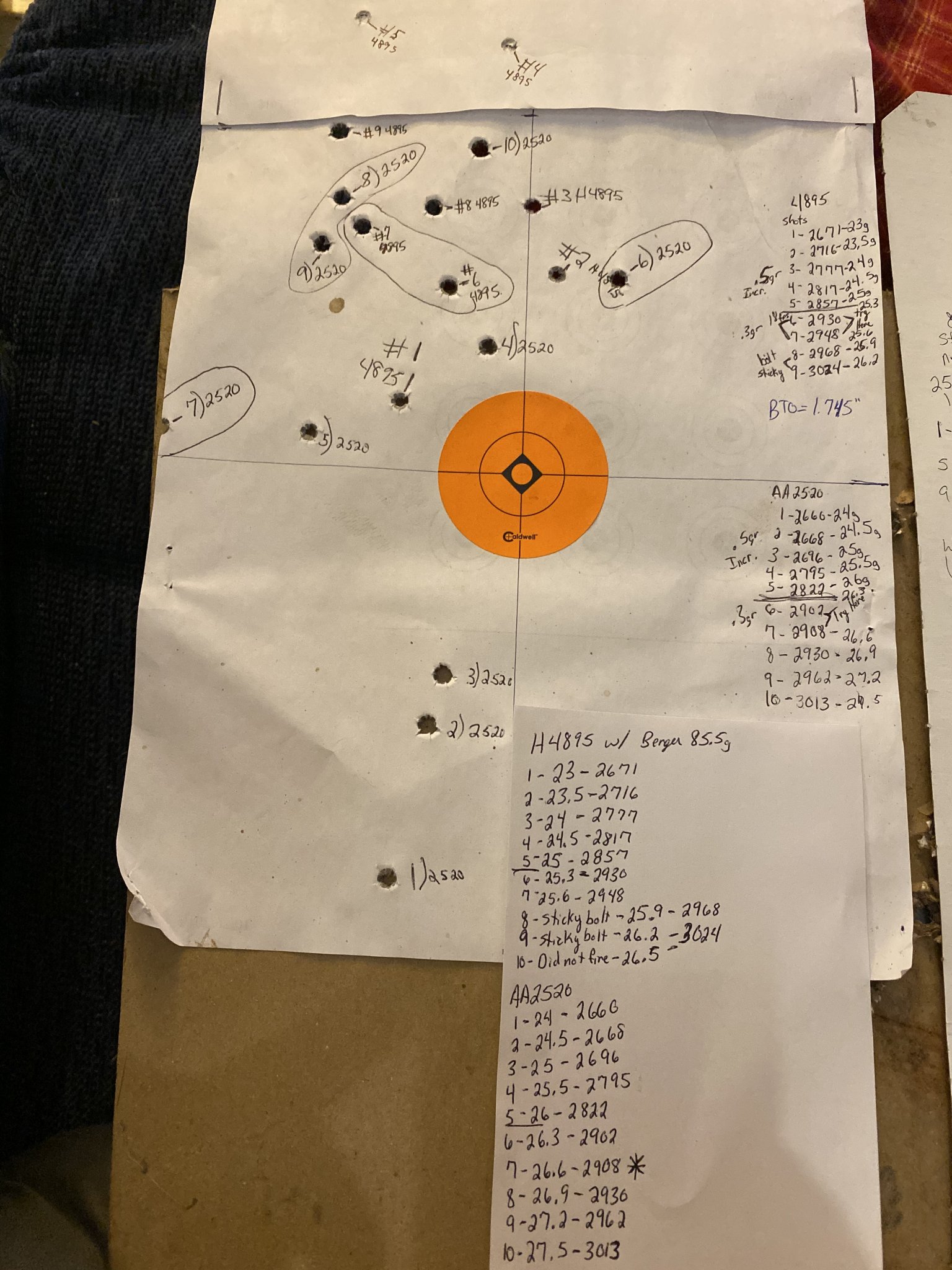 Well finished my testing with the Berger 85.5’s and cfe223. I can’t get them to group at all and will try one more powder with them to see if I can get them to group. The first outing looked promising but that has been proven to be a fluke in my setup. Here are my results for the last outing.