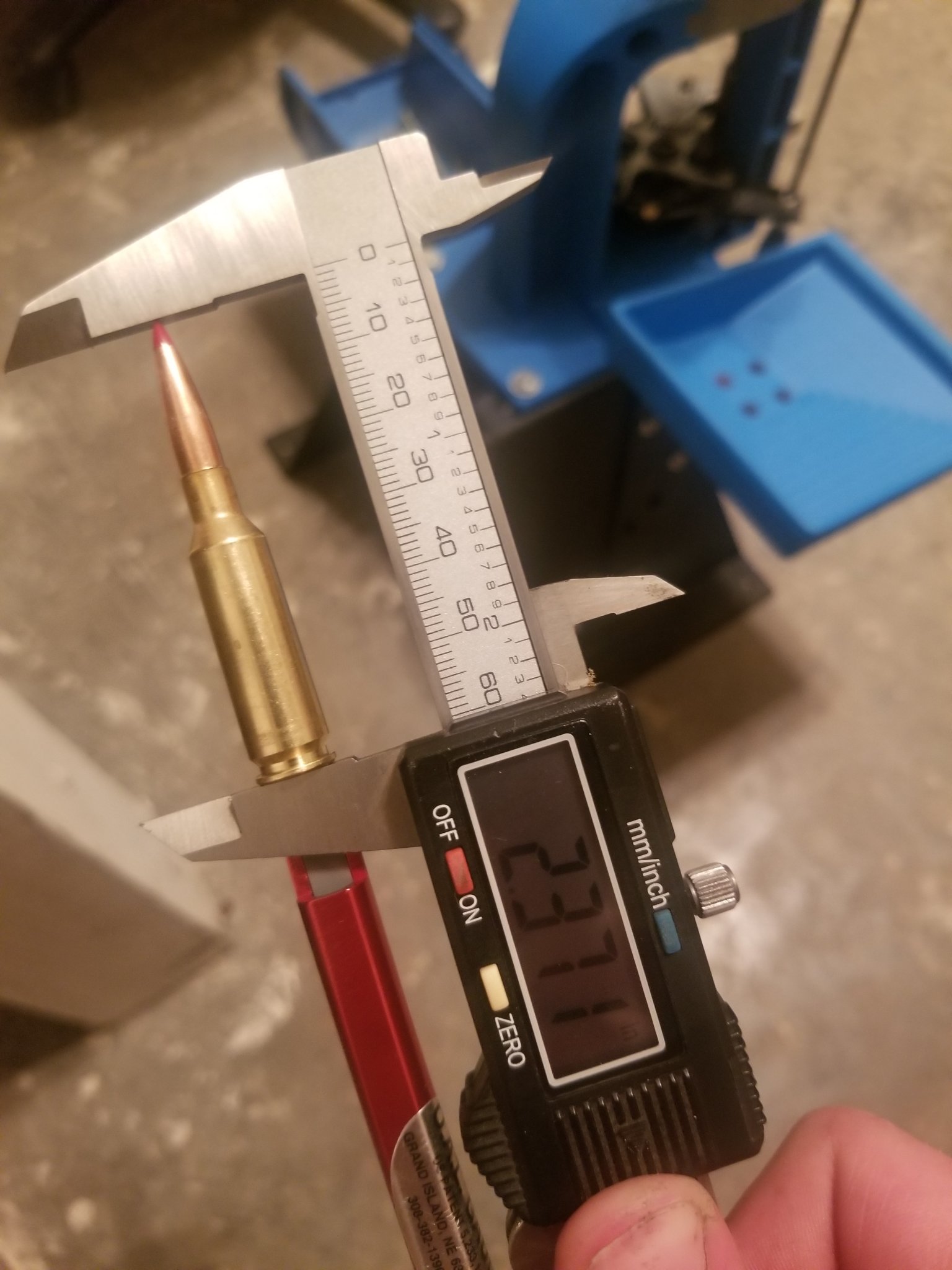 On a side note, I posted in the Semi Auto thread about factory brass shoulder datum line moving forward about .012 from virgin to first fire. I think either Federals brass is too small or I have a long chamber... Anyone able to measure virgin shoulder (.330 Headspace insert) vs once fired ?