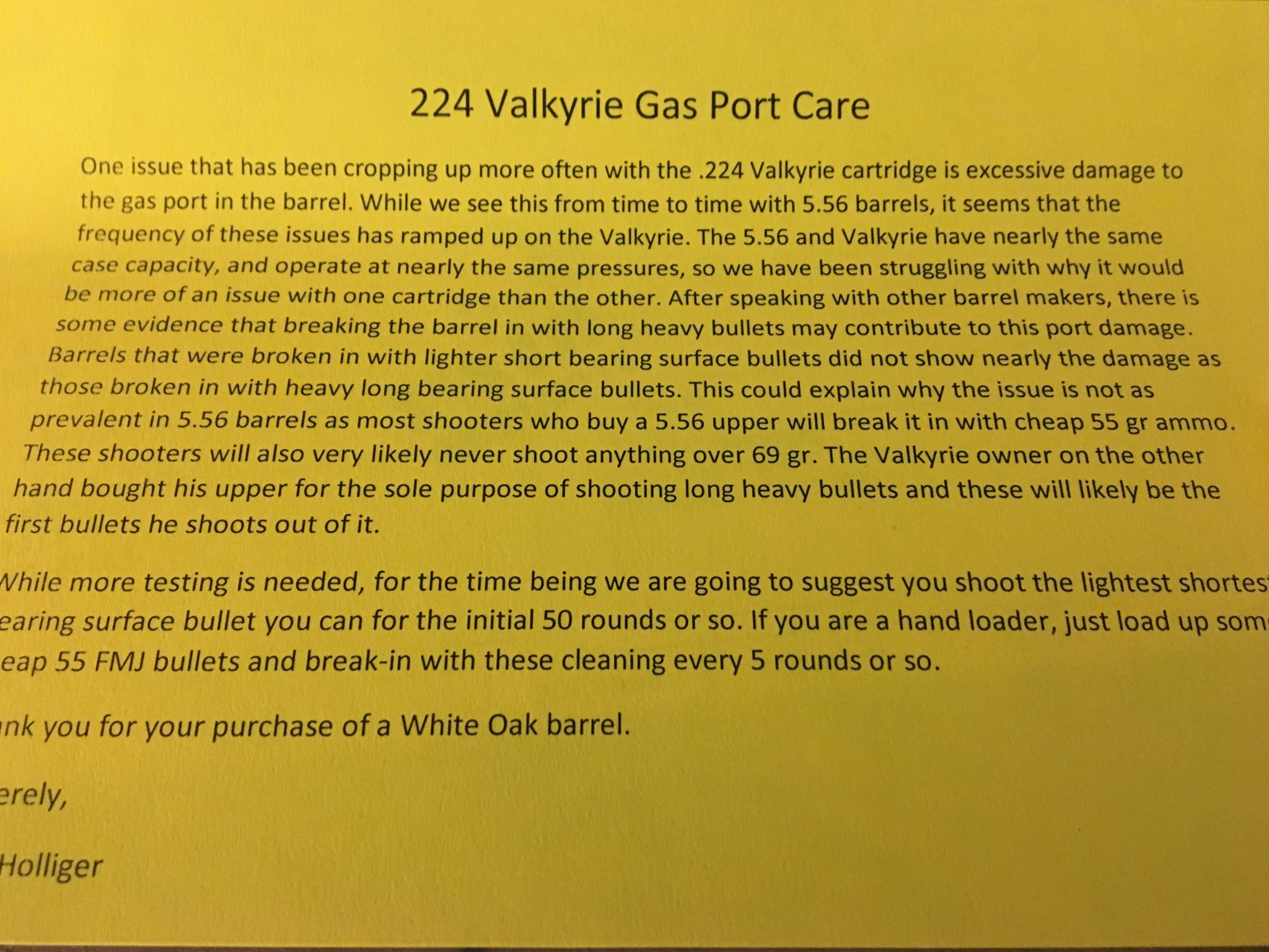 So I just received my brand spankin’ new WOP 24” 1-6.5 twist Krieger barreled upper and this notice was inside: