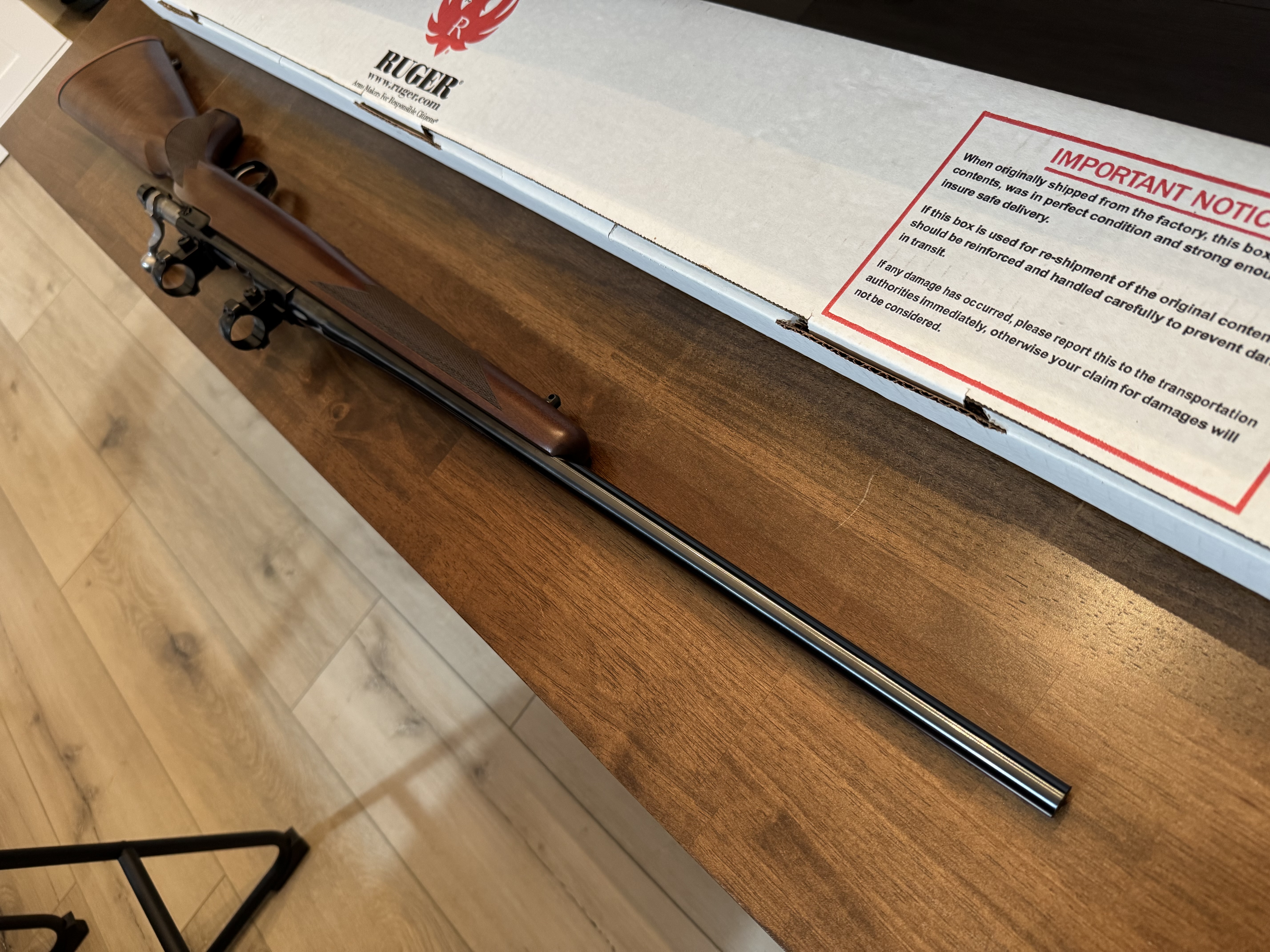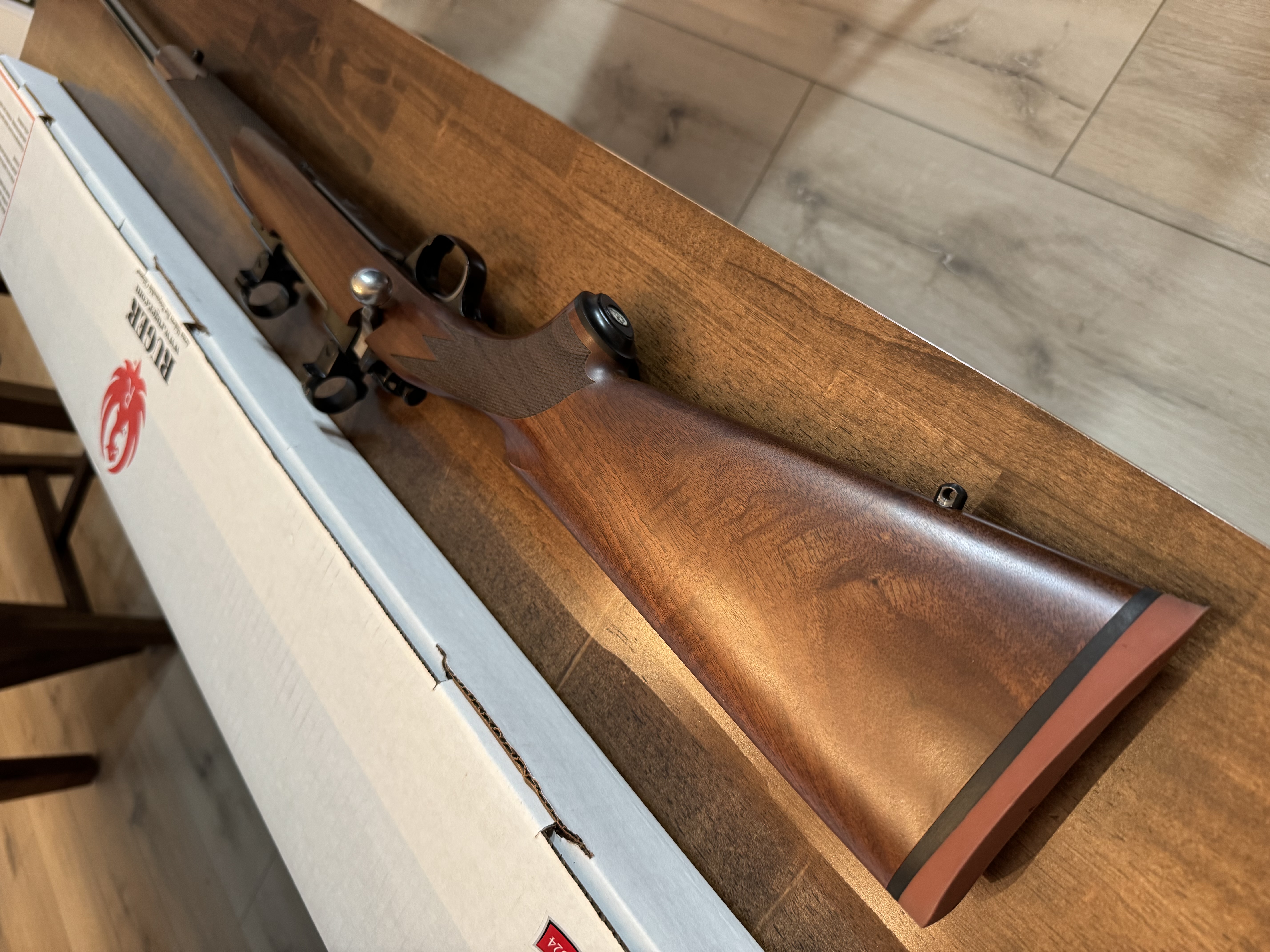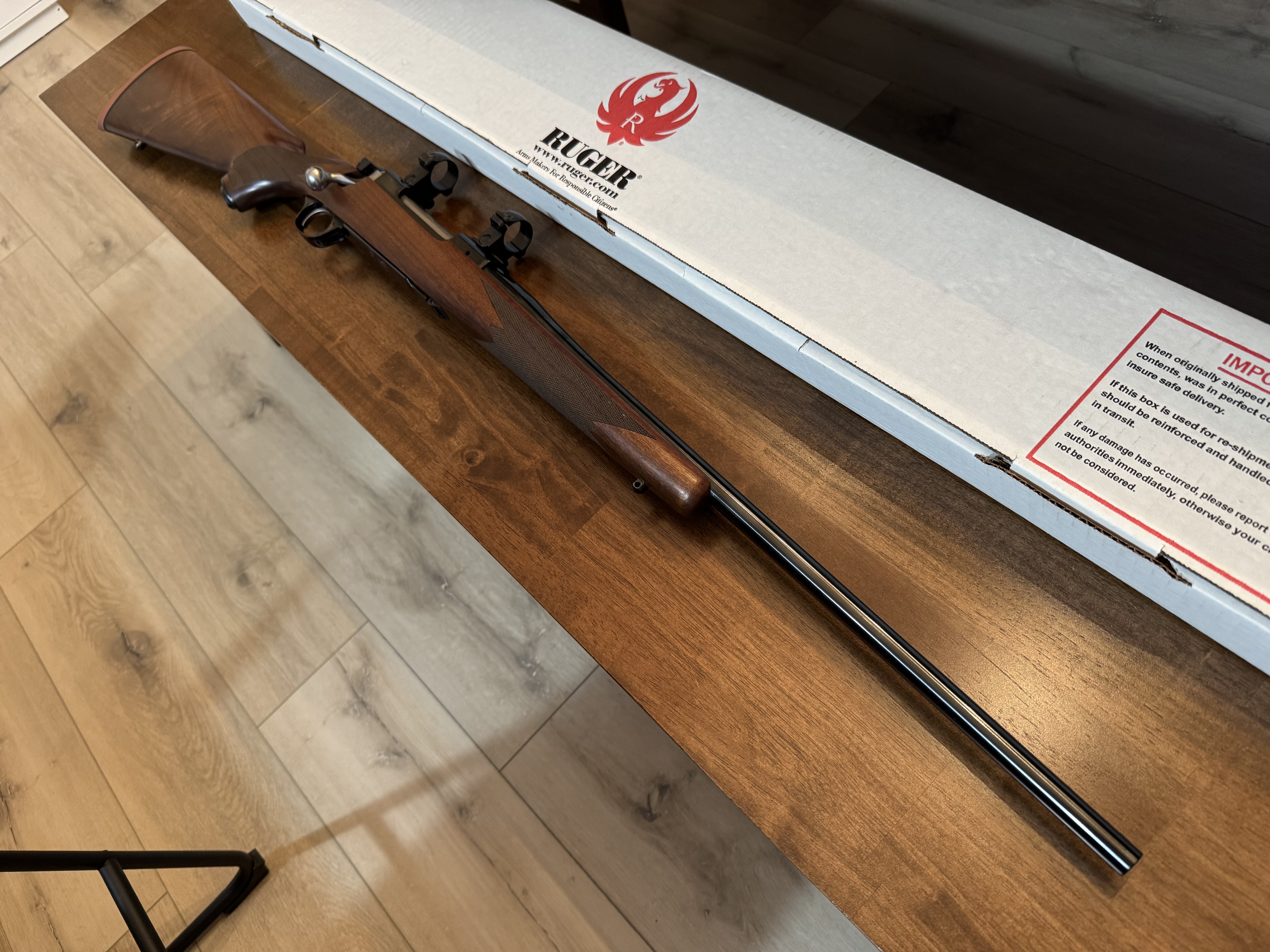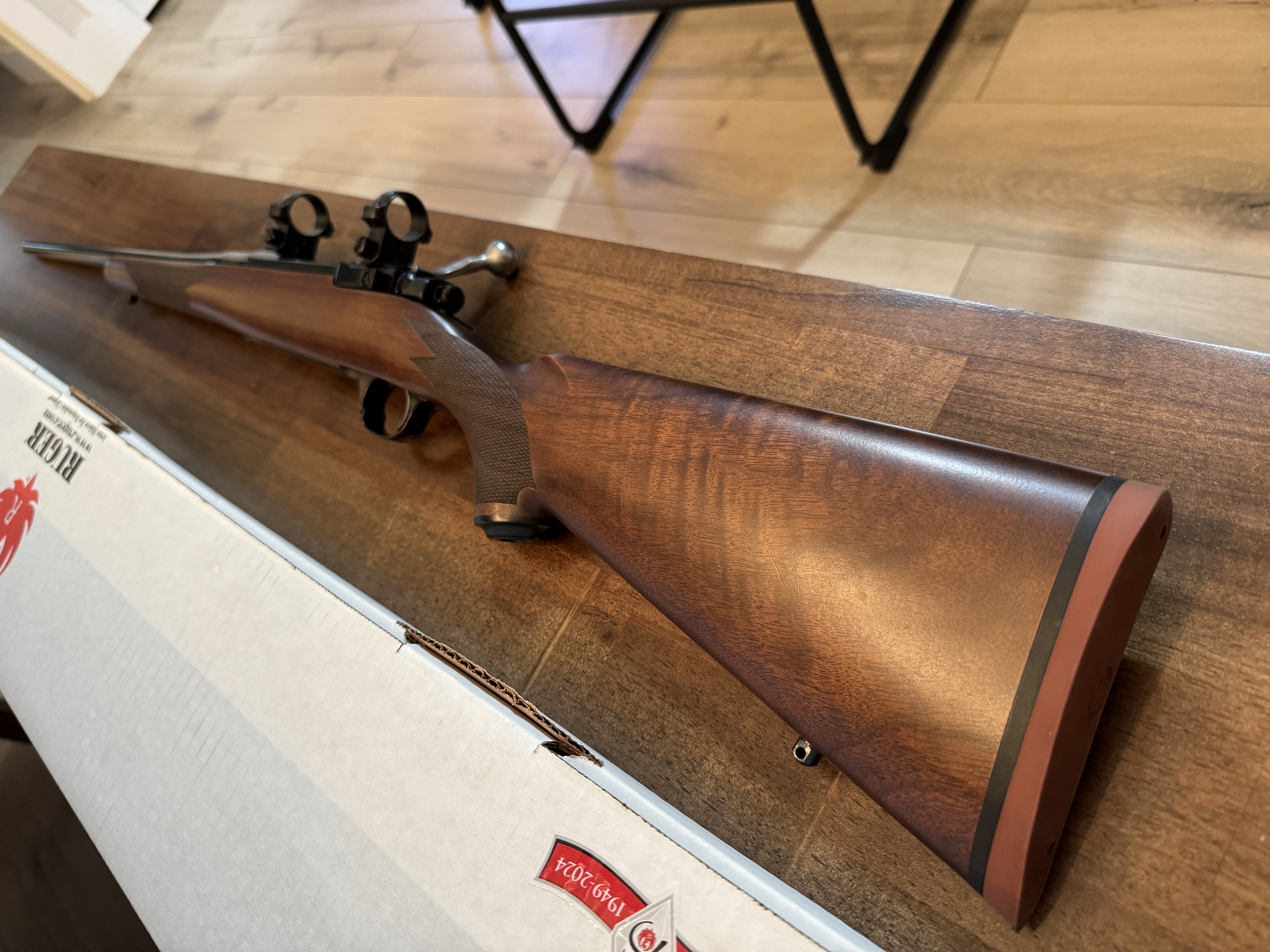 The stock has more fancy in it than most modern Rugers. This rifle has a 22” barrel with deep bluing, and maybe 30rds through it.