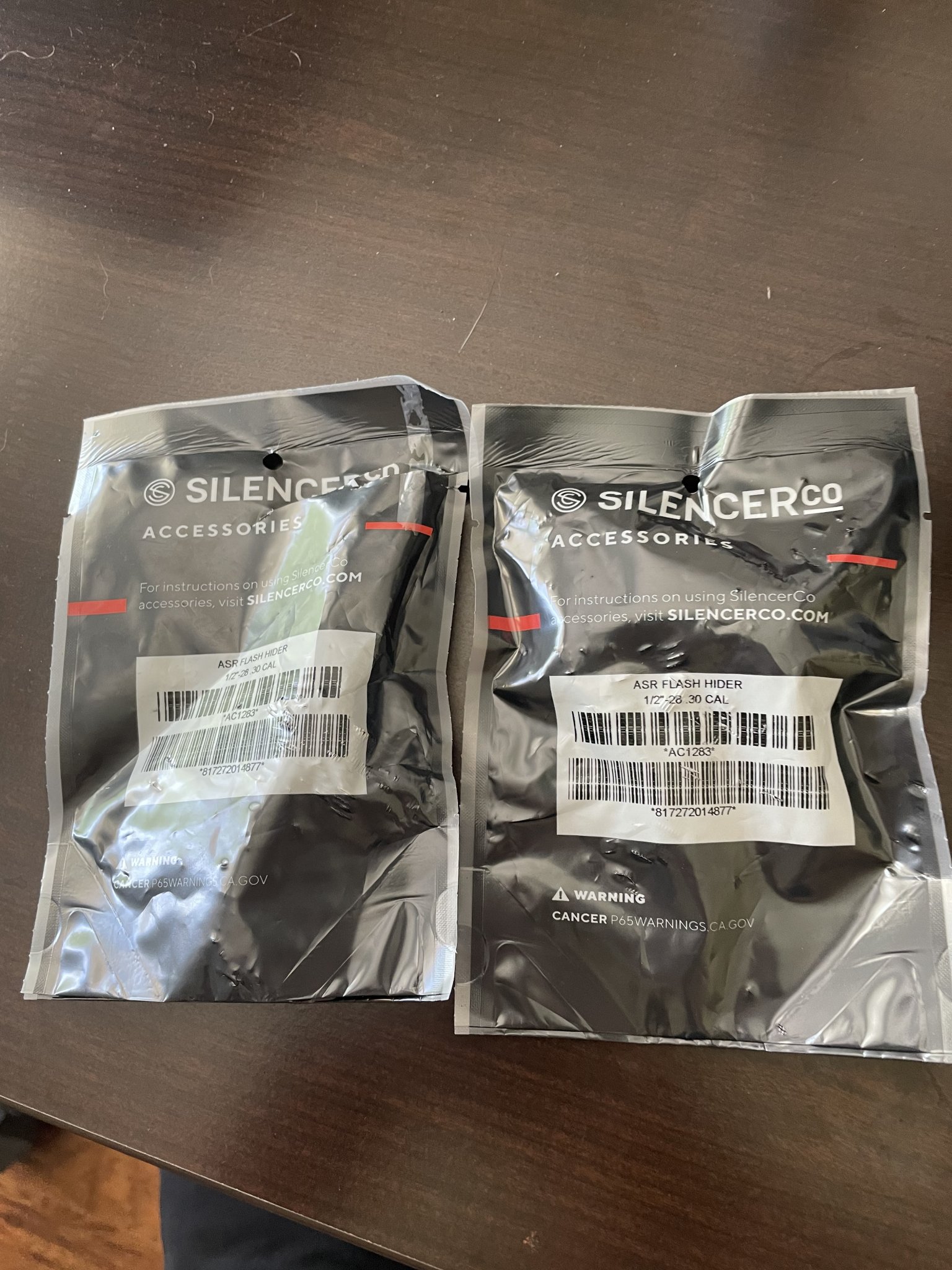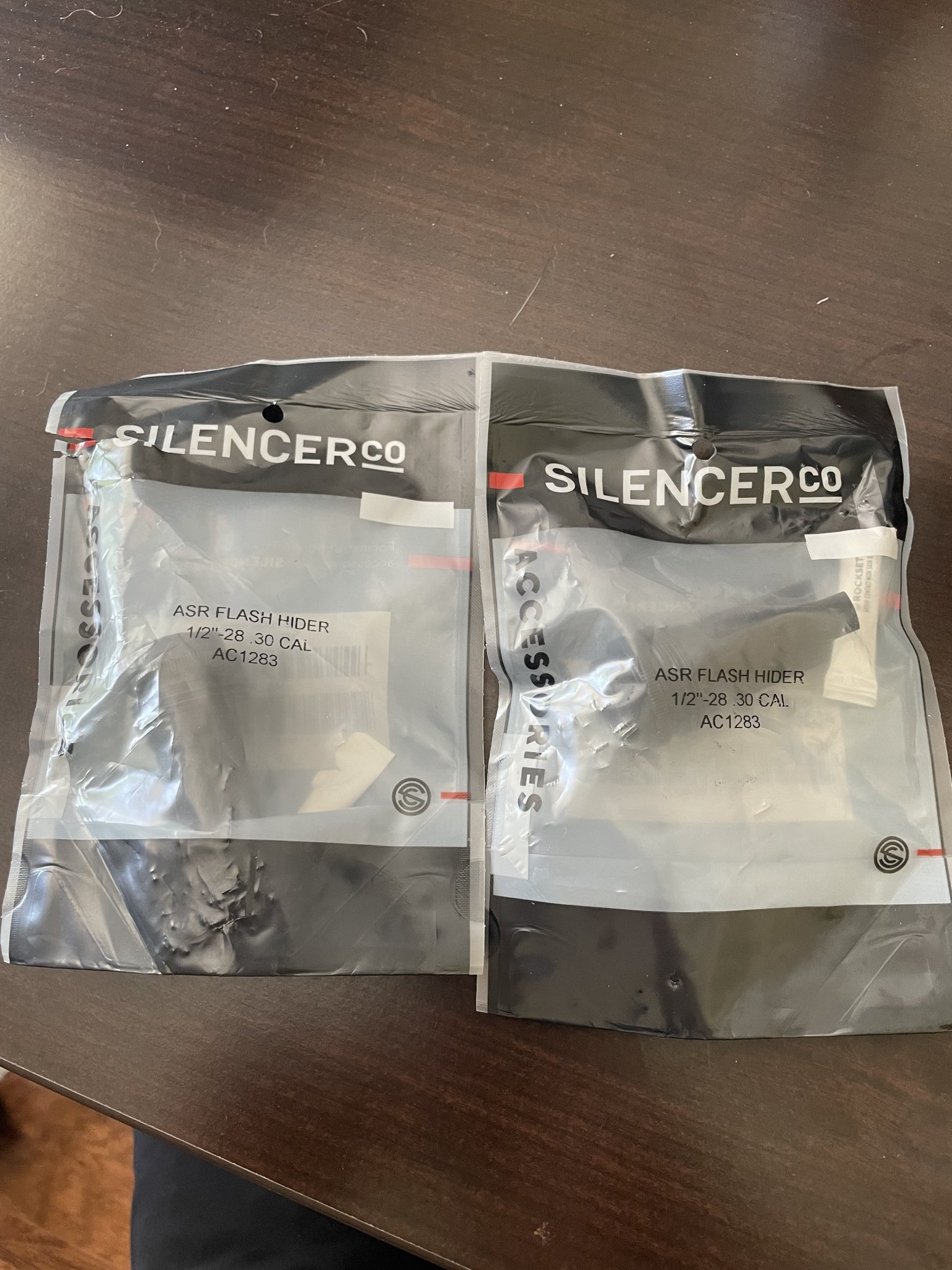 Selling 2 never used, new in package silencer co 3 prong ASR mount flash hiders. These retail from 80-90 each, will sell 2 for 140 shipped.