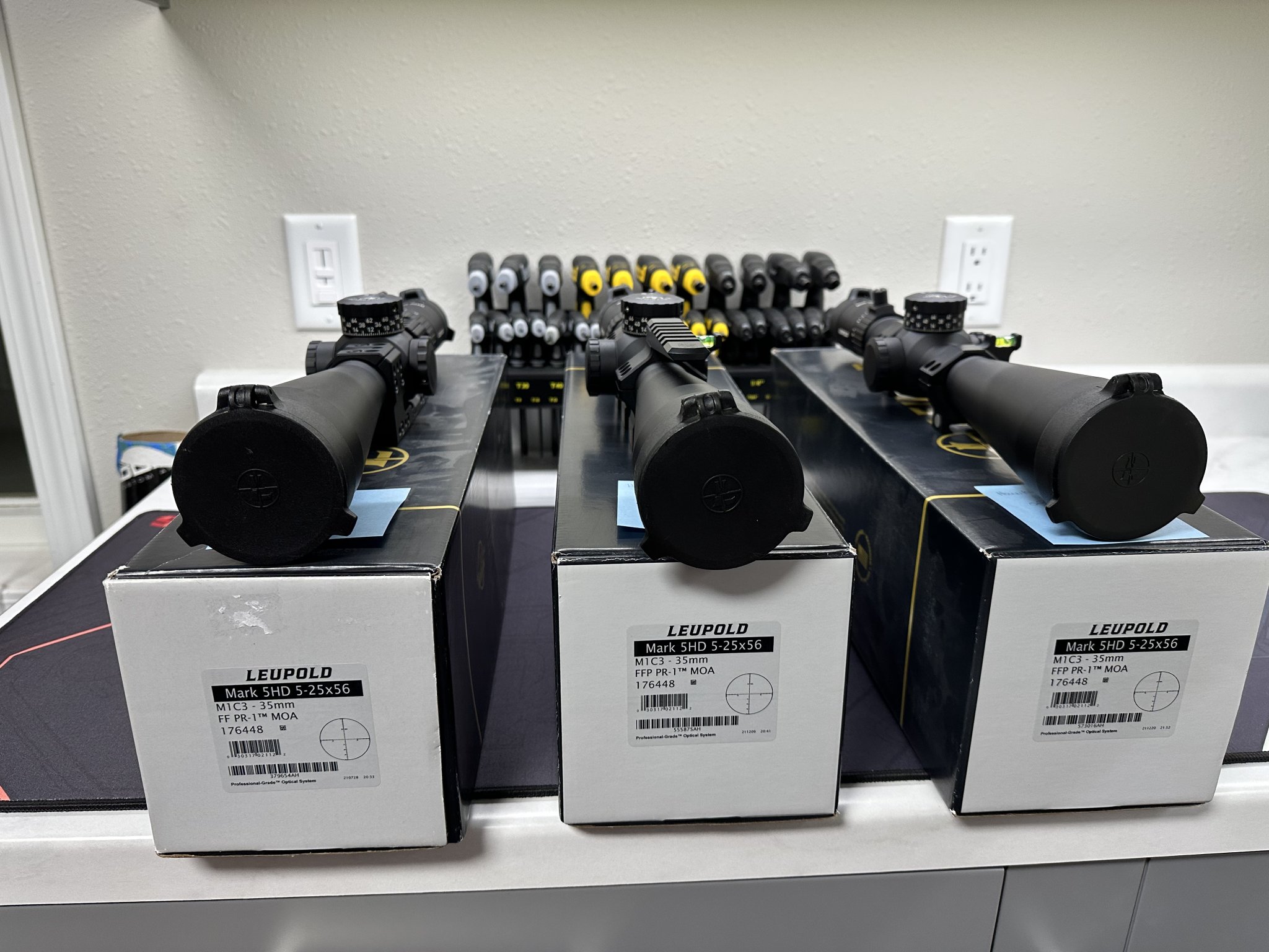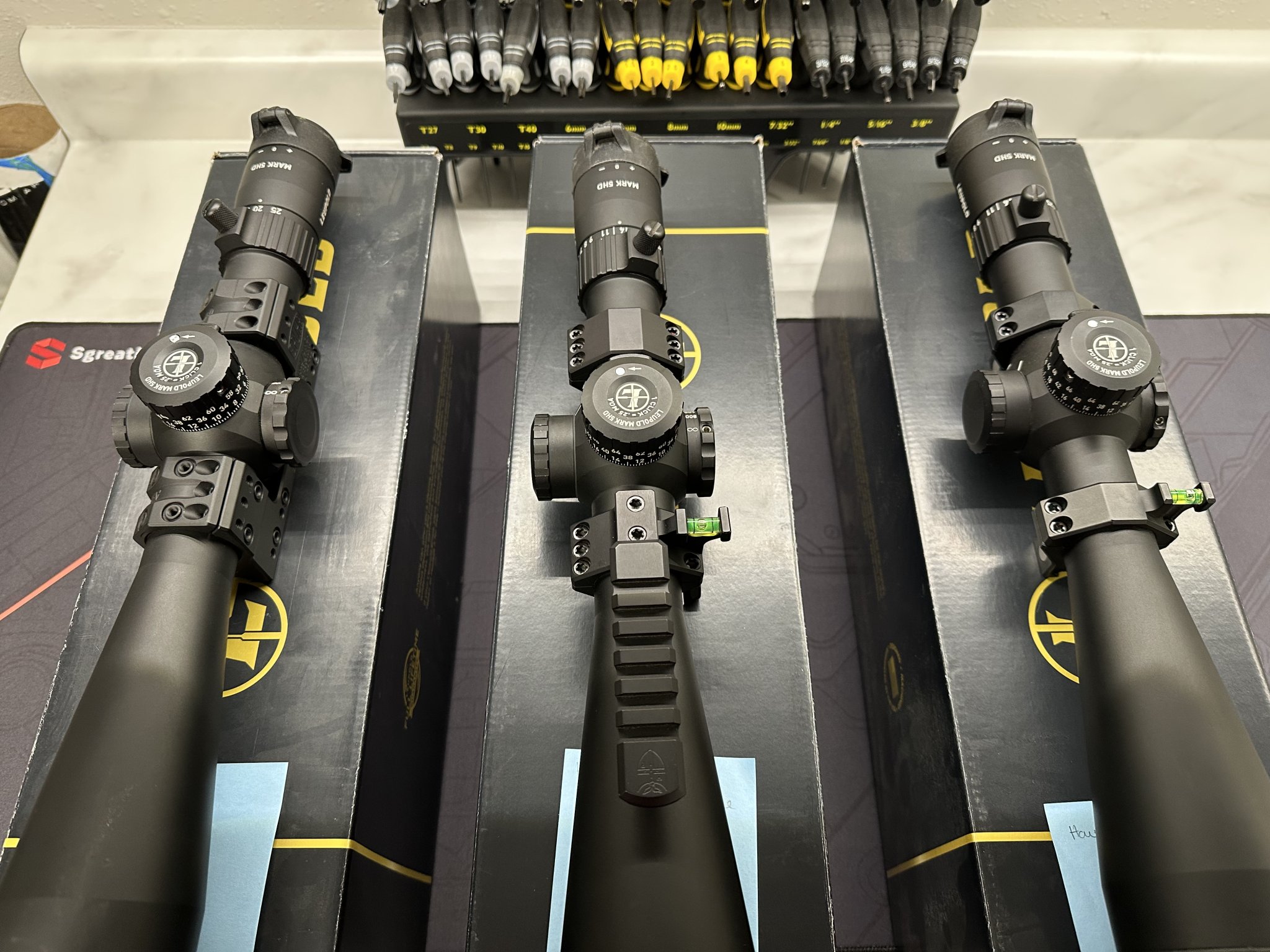 3- leupold mark 5 5-25x56 pr-1 reticle. All glass is excellent as is scope bodies. Very slight marks at the most. One is in Spuhr sp5001 mount. $2000. Next is in Hawkins heavy tactical one piece mount with diving board and level. $1900. Last (I believe) is Hawkins ultra lite tactical 1” high rings with offset level top ring. $1750. I only have two sun shades so those will go to whoever wants them first. I would sell bare scopes for $1600. Would also sell mounts separate if wanted. Just reach out prices are shipped conus with PayPal f&f.