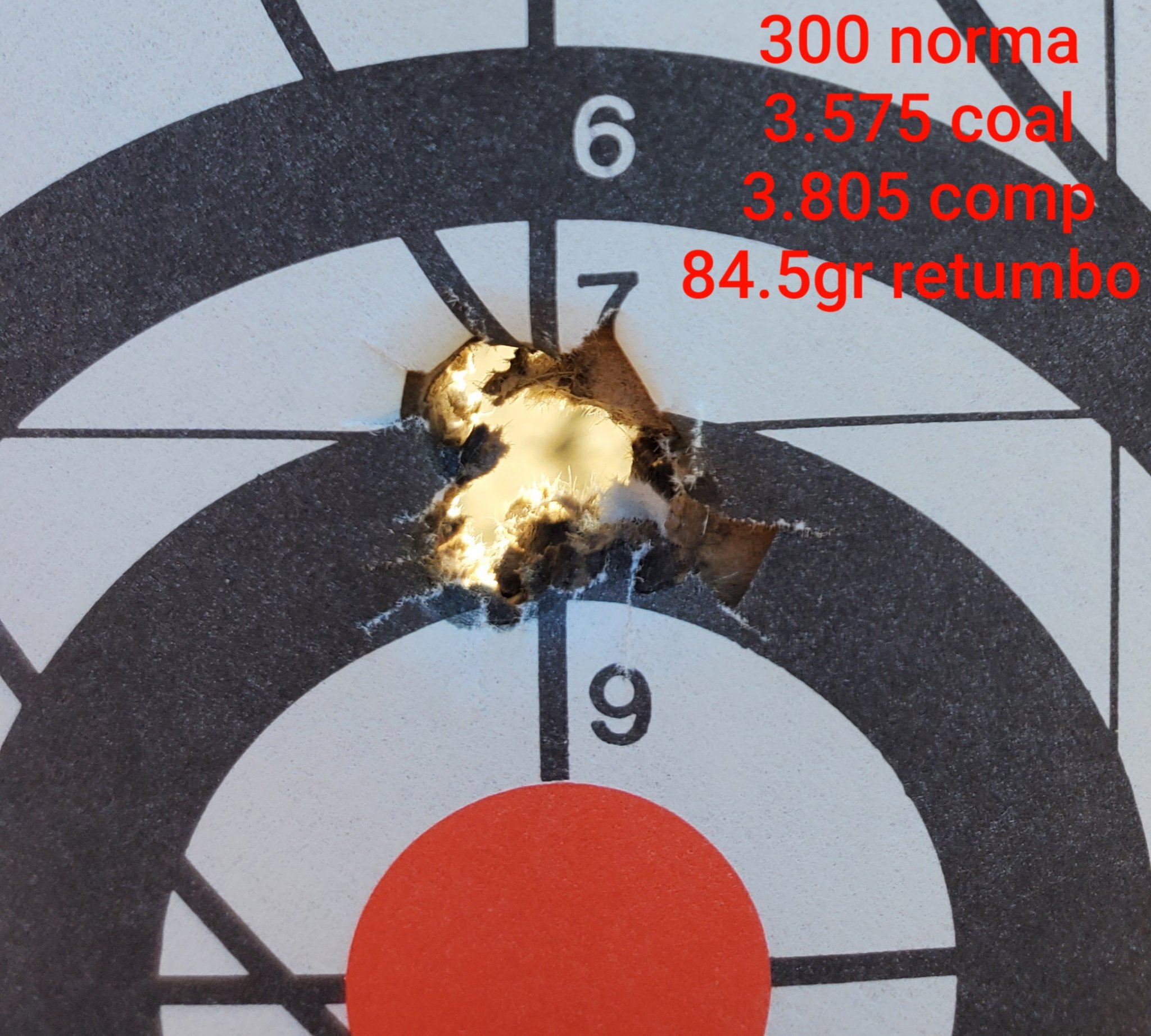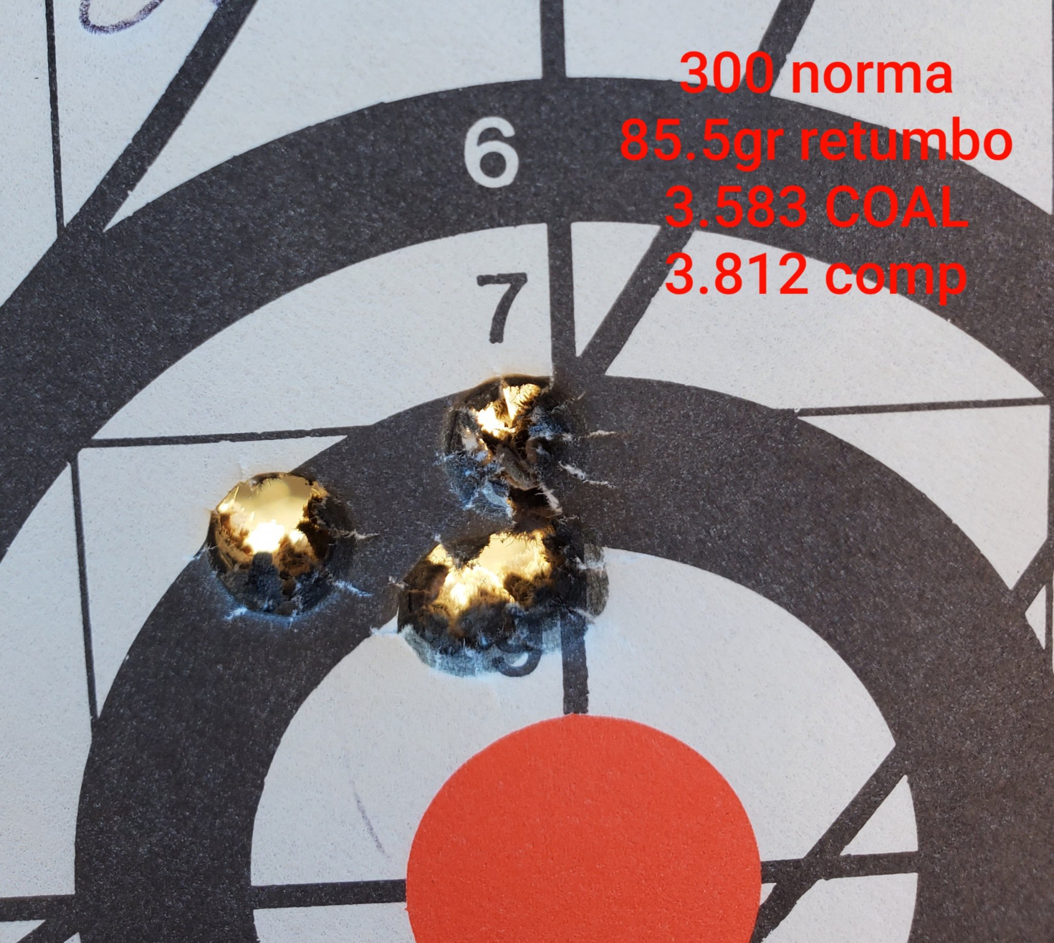 I will check my notes later but I experienced I believe similar results with my factory axmc. I couldn't get within 150fps of everyone else's load data with 300 Norma. Now that my bolts are bushed I can push pills up there within the range most people are with 0 pressure signs.