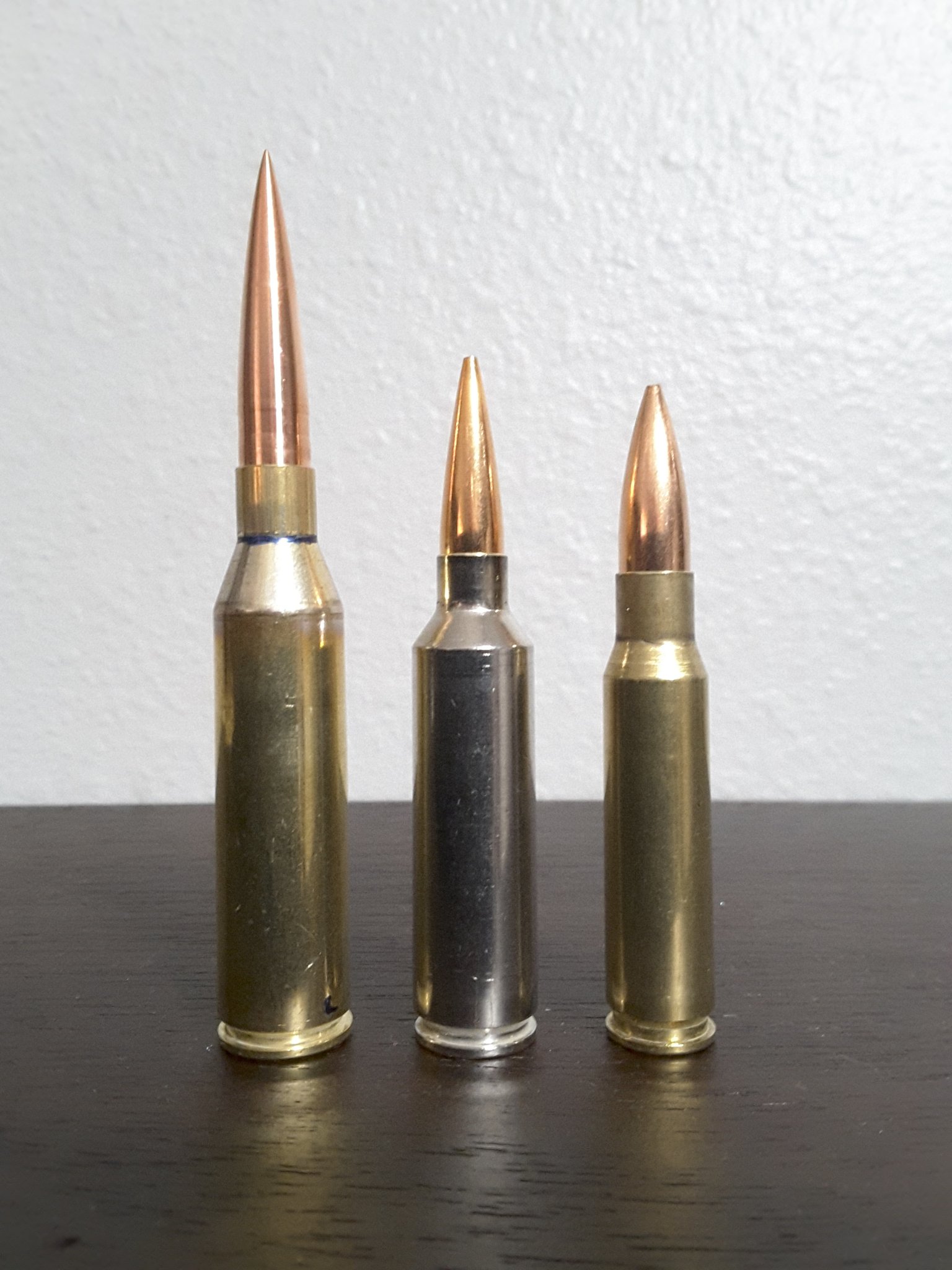 From left to right the picture of bullets is a .300 NM with 198 gr Flatline, a 7 WSM with 180 gr Berger VLD, and .308 Win with 175 gr SMK.