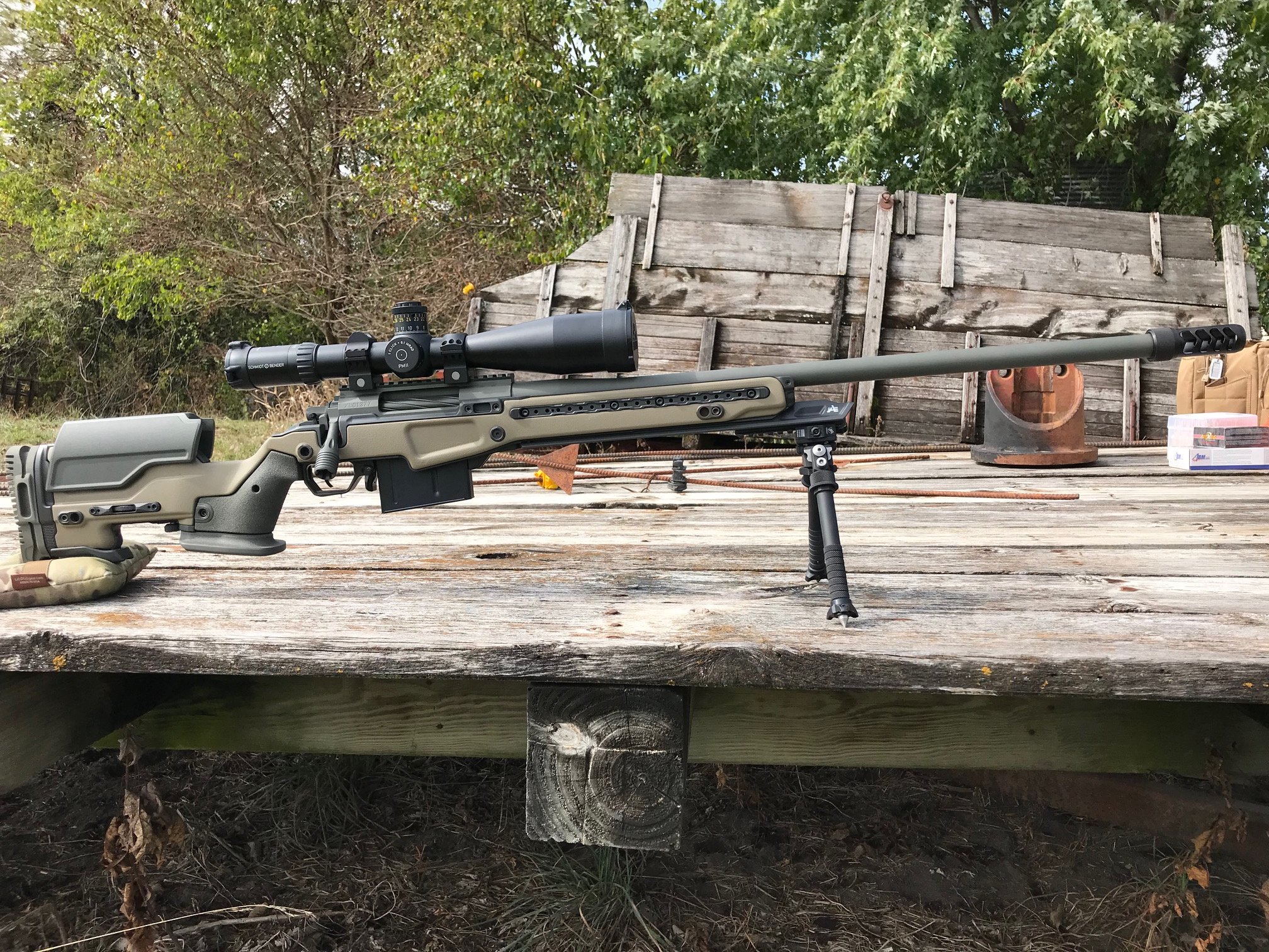 Thanks. LRI did a great job fitting the barrel, it shoots lights out, could not be happier. It's a mausingfield action, 30 inch bartlein heavy varmint 9 twist 5r. I don't know the exact neck or freebore, but I will find out soon and post it here. Bix'n andy tacsport pro 2 stage trigger, area 419 sidewinder muzzle brake, mpa ba chassis with some extra weight added, spuhr mount, vortex razor hd gen 2, 30 moa on the rail, and a atlas 5h bipod. Have only got to shoot it to 800 yards, waiting for the soy beans to get cut so I can stretch it out. 800 is a joke with this gun, hoping to get to a mile right after deer season. I highly recommend LRI, I have several guns built by them, and they all shoot well under 1/4 inch, provided I do my part. They have fast turn around time, which is important to me because Ime not the most patient person.