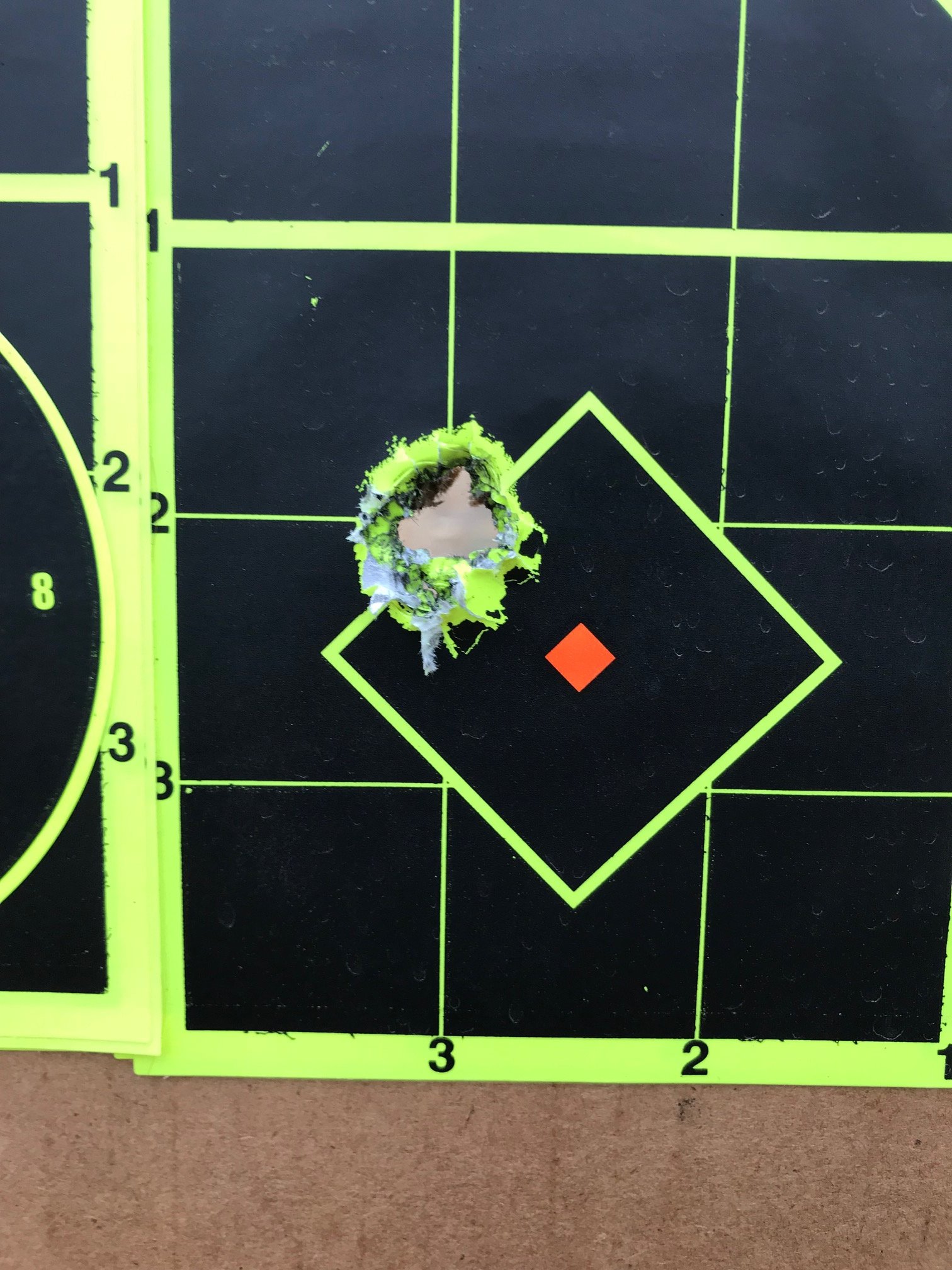 Here is a 5-shot group shot at 100y. 83gr of N570 pushing a 230 hybrid at a mild 2915fps. COAL: 3.600.