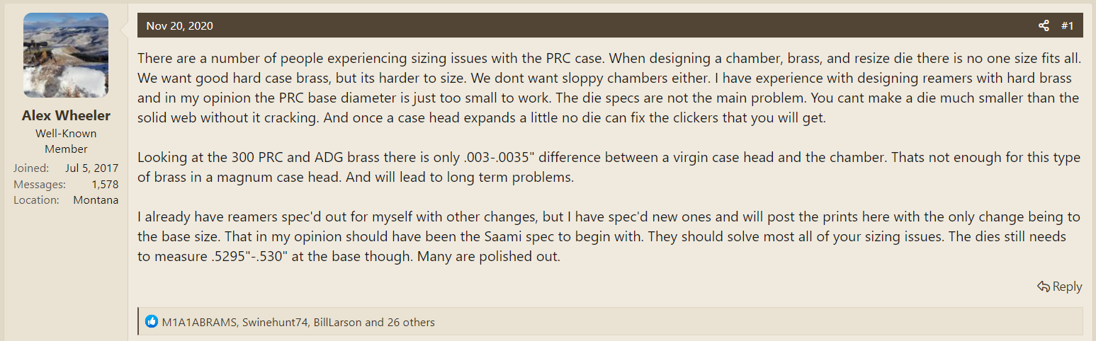 Need advice FL sizing 300 PRC Lapua Brass. Failure with two separate Redding FL Type-S dies. Can someone help me find a 300PRC FL bushing die that works? I am not going to by a third Redding die. I can't be the only one having FL resizing issue with this caliber? I hope to get more than four firings out of this expensive brass.